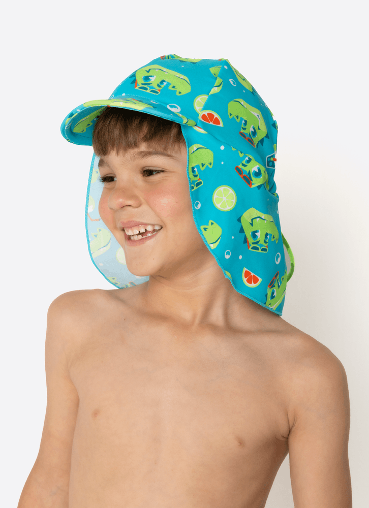 Chapéu kids Jaca Relax. Feito em estampa corrida, possui aba rígida, ajuste de tamanho traseiro e tecido para proteger o pescoço.