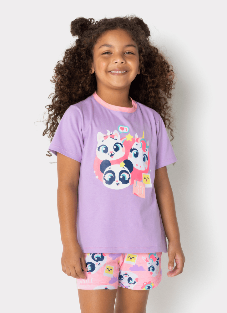 Pijama manga curta com estampa divertida e exclusiva Multi Bichos Best Friends Puket