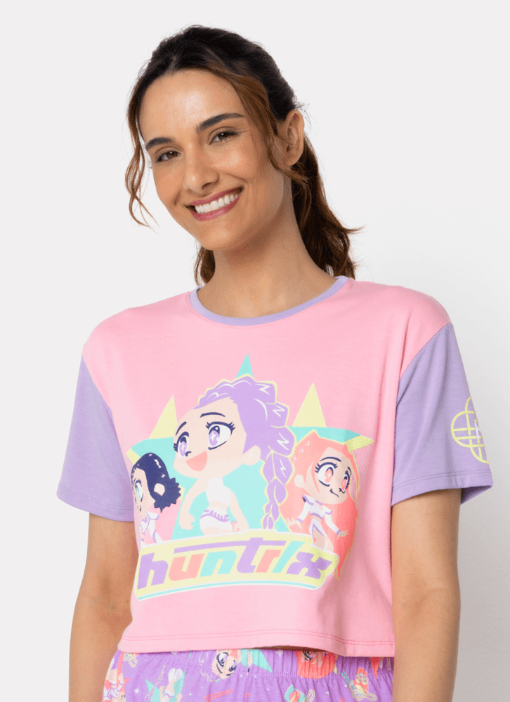 Pijama Manga Curta com estampa divertida e exclusiva Guerreiras do K-pop para Puket