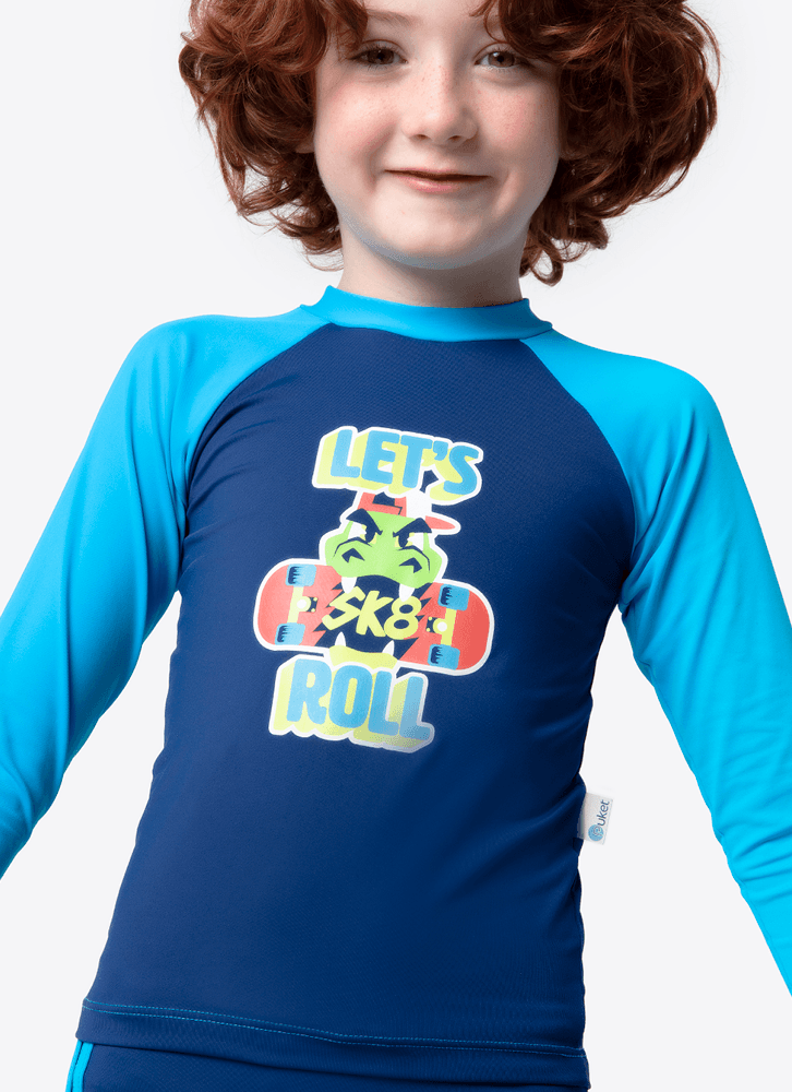 Camiseta com Proteção Solar Menino Dinossauro Skate