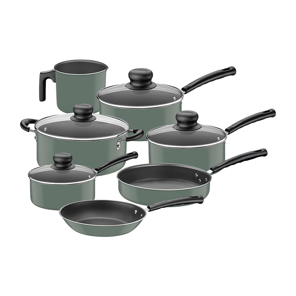 Composto por frigideiras, caçarola e panelas, o conjunto oferece funcionalidade completa para o preparo das suas receitas. O antiaderente Verde fosco garante um visual refinado e contemporâneo.