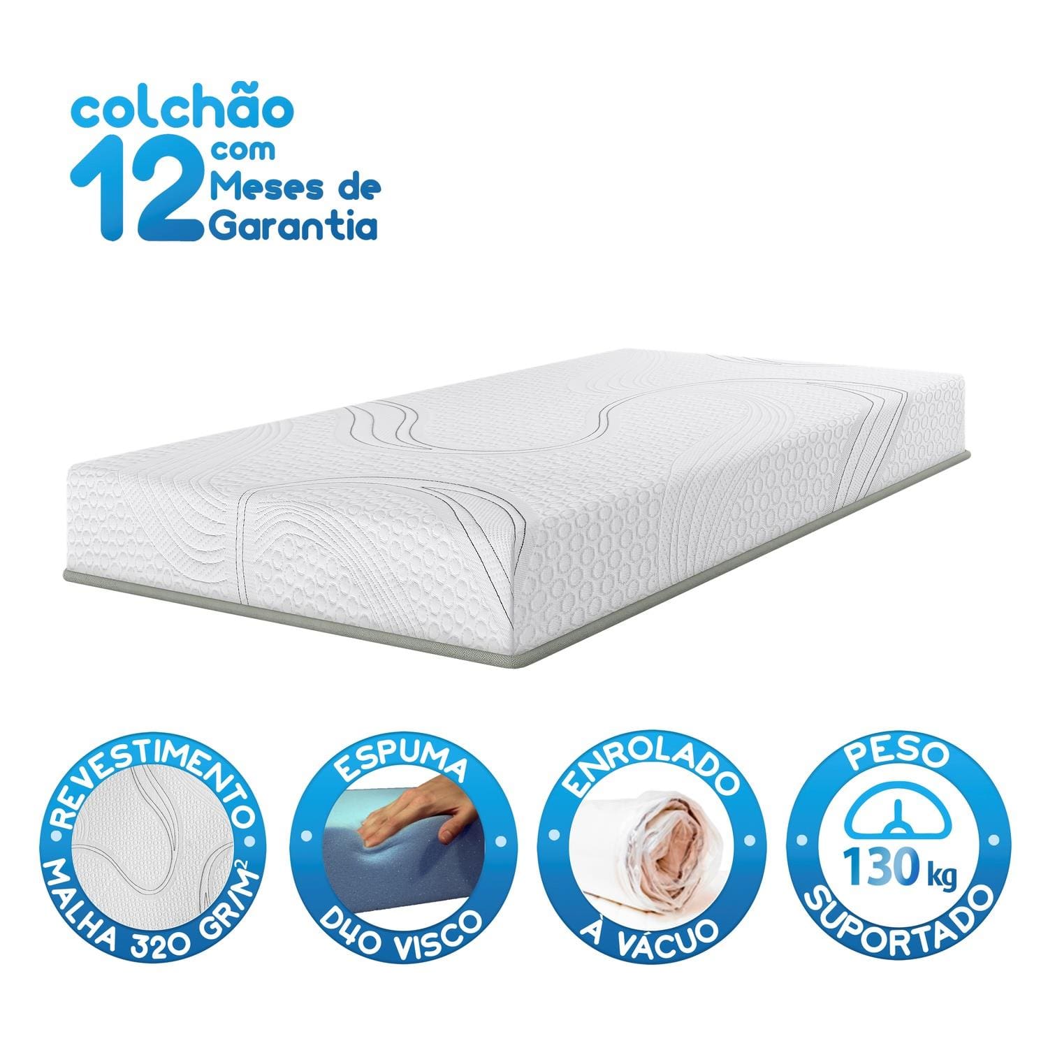 - Espuma viscoelástica D40 + D33: adapta-se ao corpo, aliviando pontos de pressão.