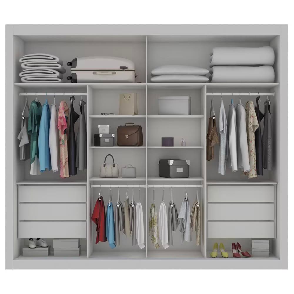 Guarda-Roupa Casal Europa Triunfo Flex com Espelho, 2 Portas de Correr e 6 Gavetas - 226cm de Largura