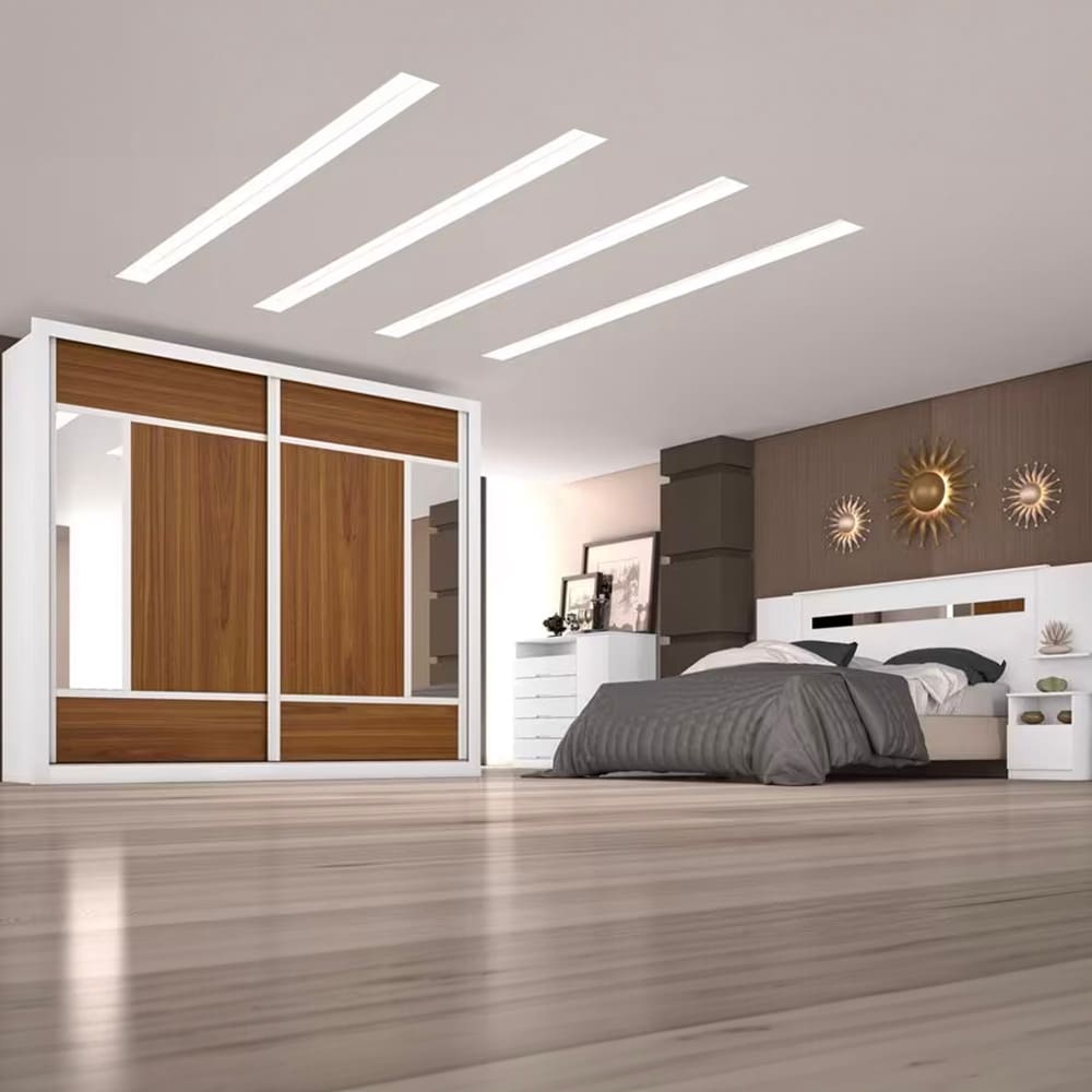 Conta ainda com cabideiro de alumínio, puxador usinado, 2 portas com espelho, sapatas plásticas e trilhos inferiores de alumínio. Ah, não podemos deixar de falar também da sua coloração Flex, onde você pode escolher, no momento da montagem, as cores das portas.