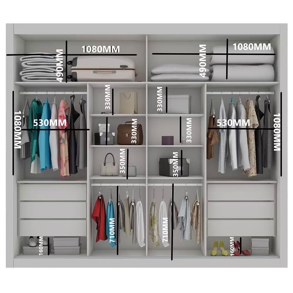 Conteúdo da Embalagem: - 1 Guarda-Roupa Casal Europa Triunfo Flex com Espelho, 2 Portas de Correr e 6 Gavetas - 226cm de Largura.