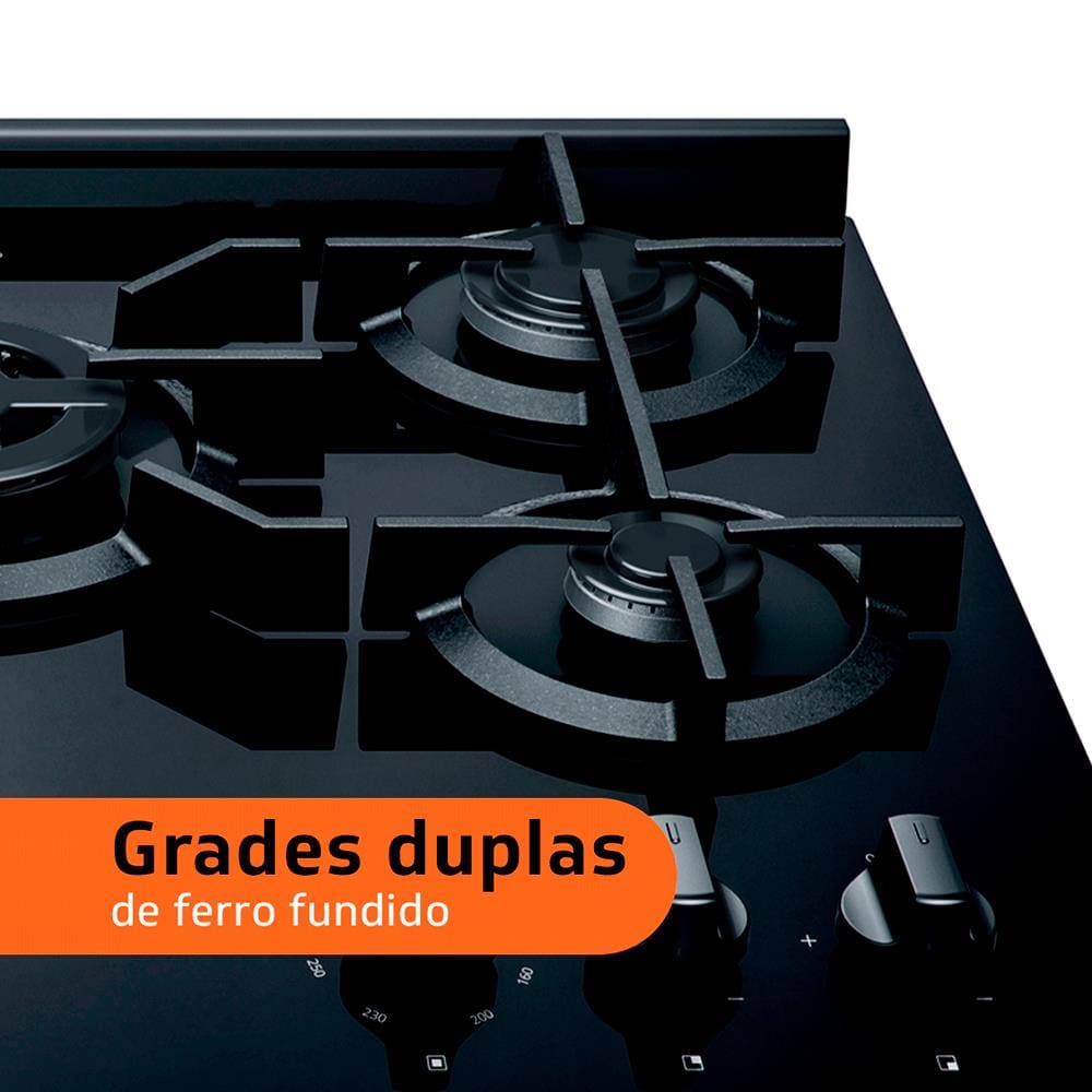 Fogão Brastemp 5 Bocas BFS5VCE com Mesa De Vidro e Turbo Chama Bivolt - Preto
