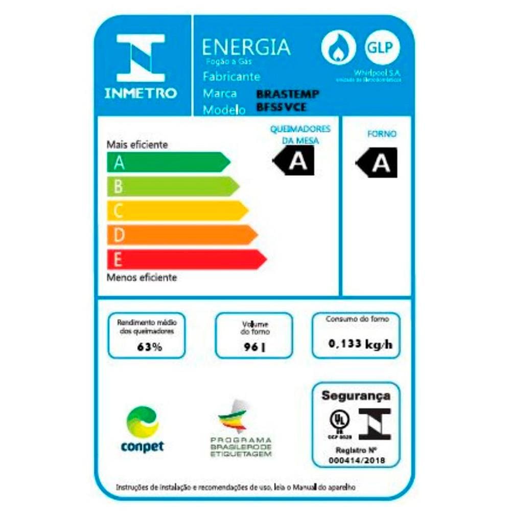 Conteúdo da embalagem: -1 Fogão Brastemp 5 Bocas BFS5VCE com Mesa De Vidro e Turbo Chama Bivolt - Preto;