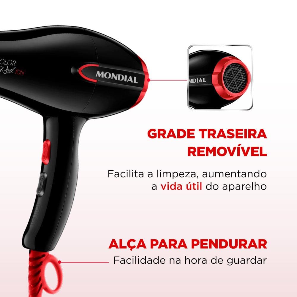 Secador de Cabelos Mondial Turbo Color Red SC-41 com Tourmaline Íon 1900W