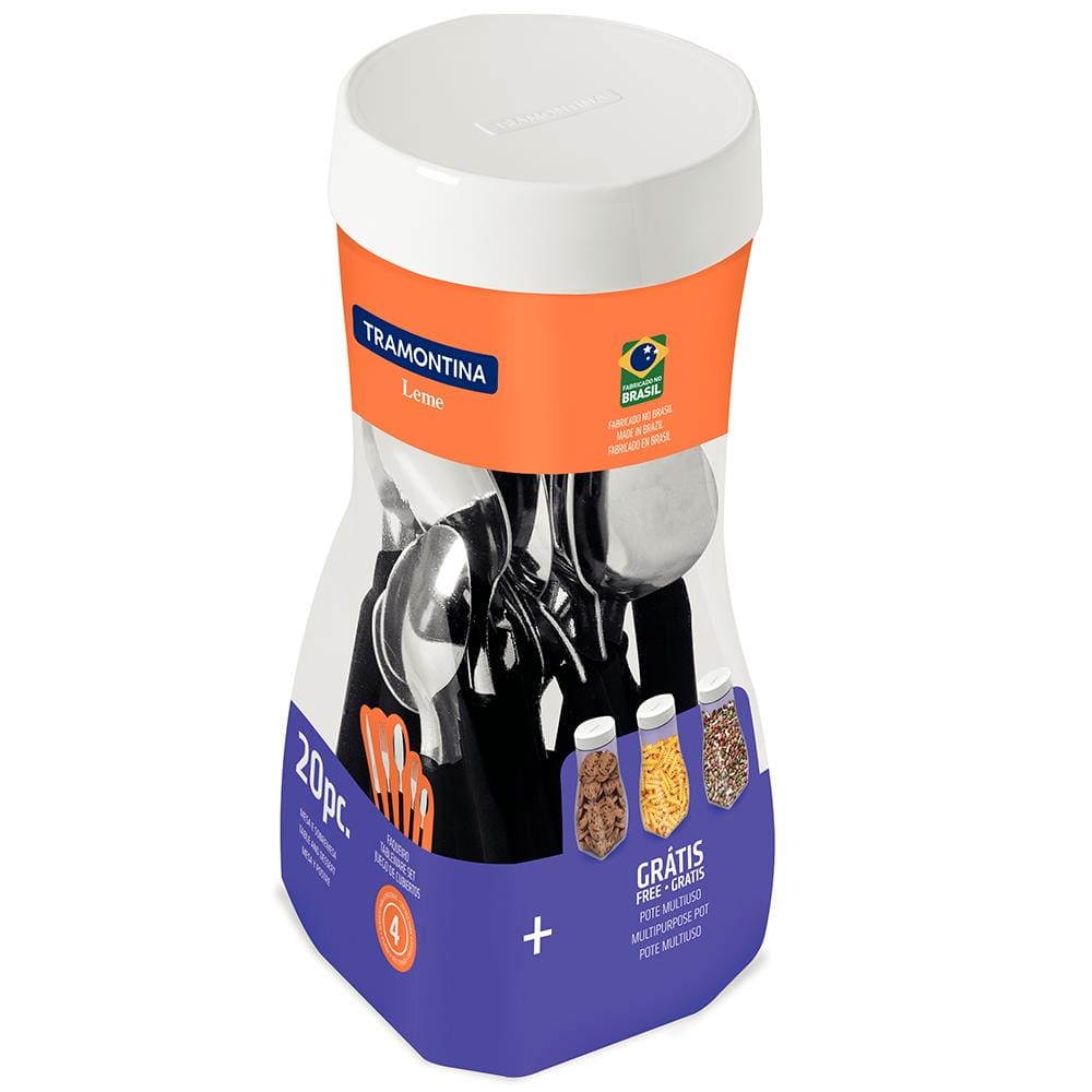 Faqueiro 20 Peças Tramontina Leme em Aço Inox e Polipropileno com Pote Multiuso – Preto
