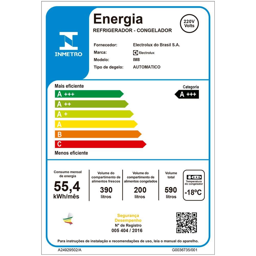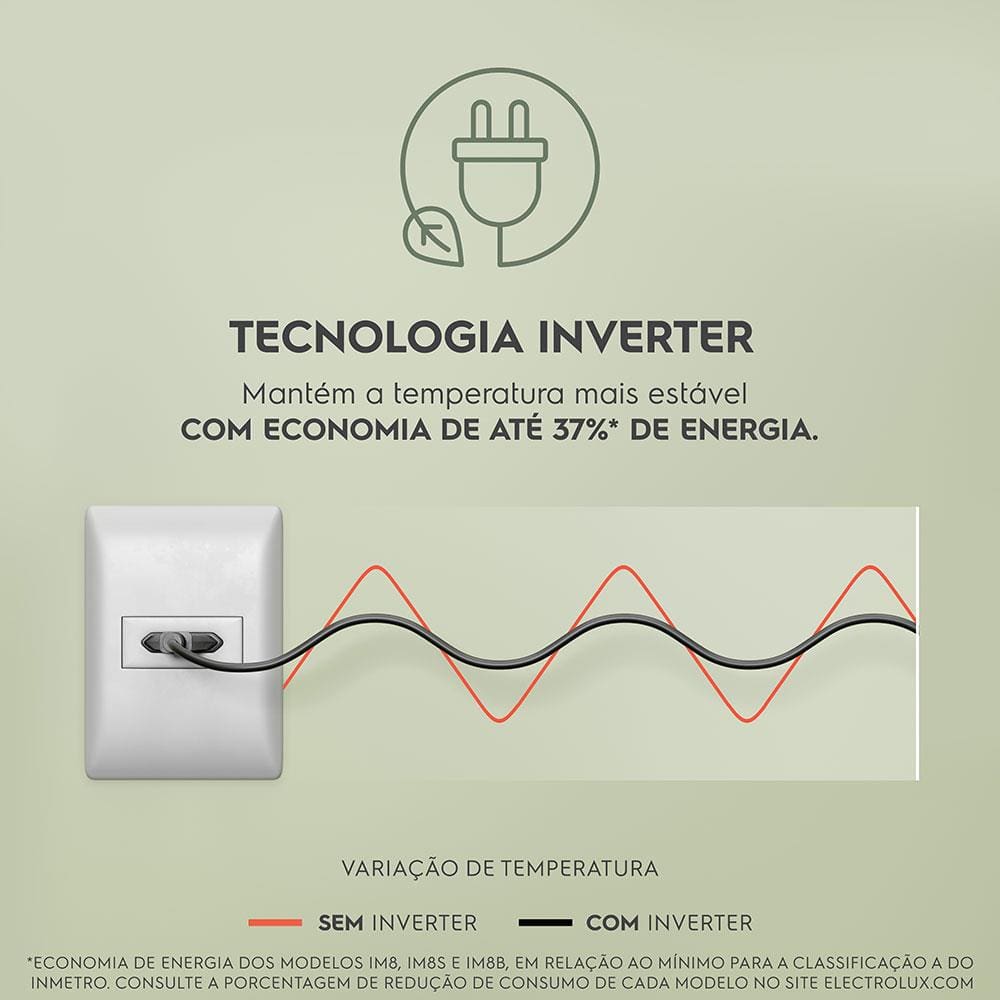 - Tecnologia Inverter: A Geladeira IM8 é uma das geladeiras brasileiras mais econômicas do segmento (4), que economiza até 37% (3) de energia e garante as condições ideias para preservar seus alimentos.