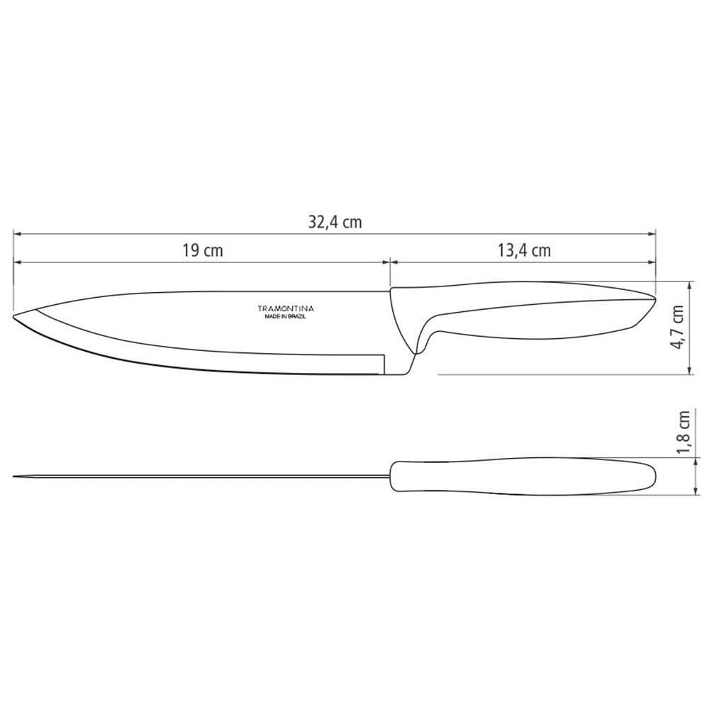 Conteúdo da Embalagem: - 1 Faca 8" Chef Tramontina Plenus em Aço Inox - Off-White