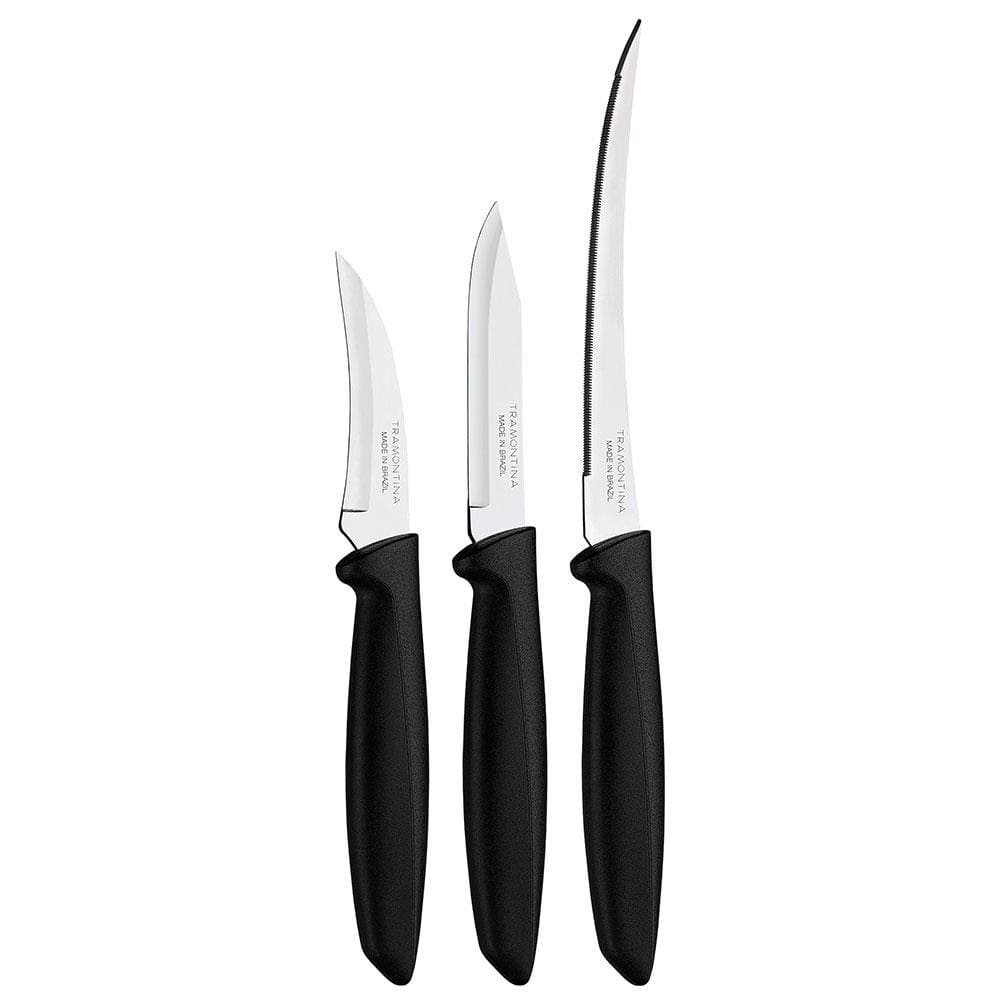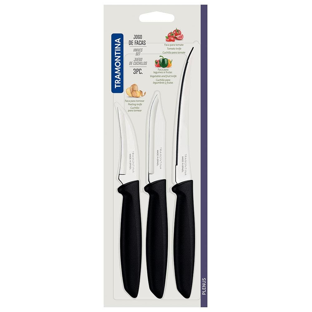 Conjunto de Facas Tramontina Plenus em Aço Inox e Polipropileno - Preto - 3 Peças
