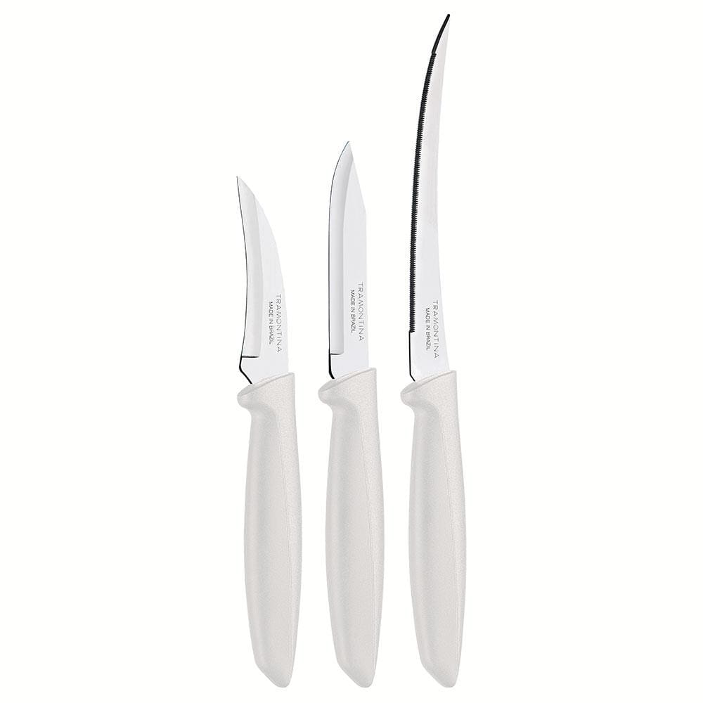 Conjunto de Facas Tramontina Plenus em Aço Inox e Polipropileno - Off-White - 3 Peças