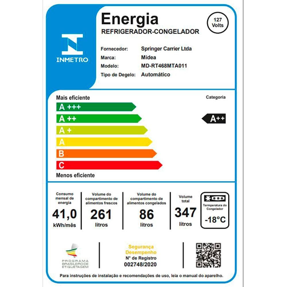 - Super Econômico: Selo Procel e classificação Energética A++ para modelo 110V e A+++ para modelo 220V