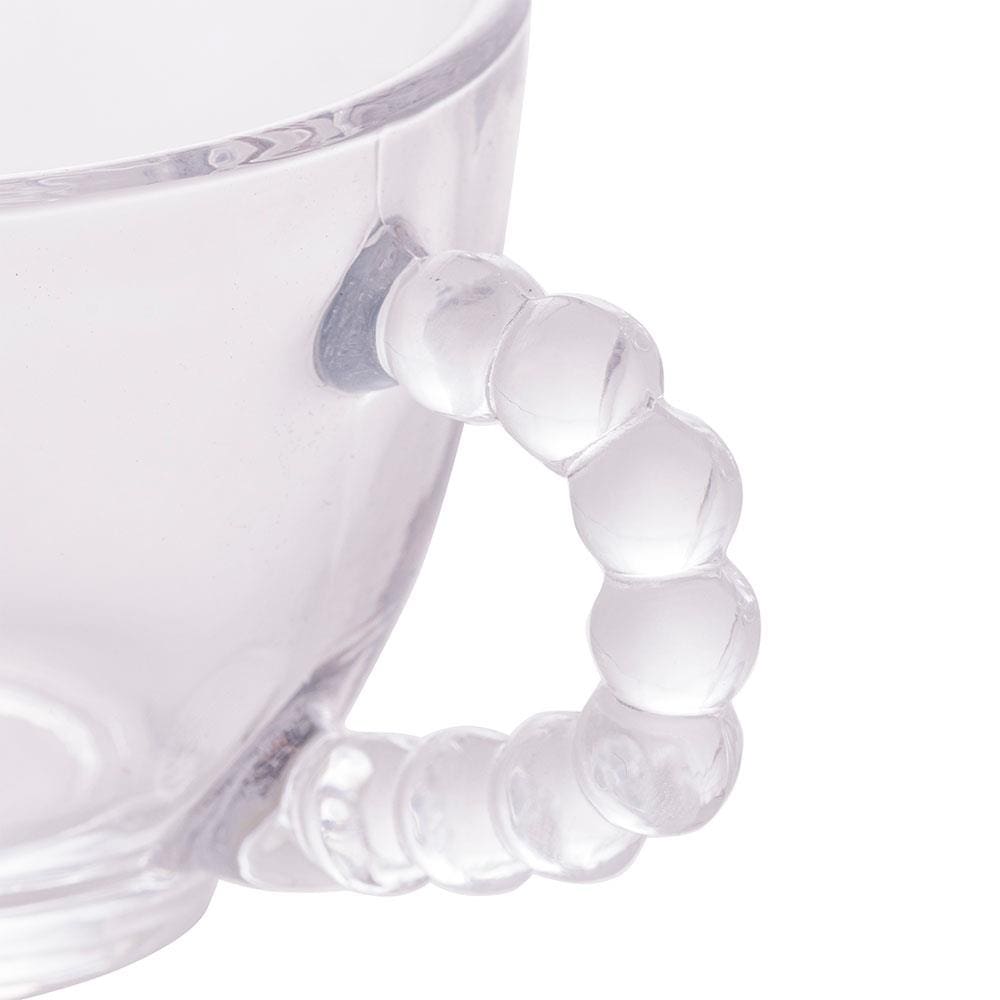 As peças possuem um design delicado, especialmente desenhado para agregar elegância e versatilidade em sua decoração, com uma estética translúcida que permite ver o conteúdo em seu interior, e alça com lapidação de bolinhas inspirada na beleza e no brilho único das pérolas, adicionando um toque leve, sutil, e muito sofisticado para a composição de sua mesa.