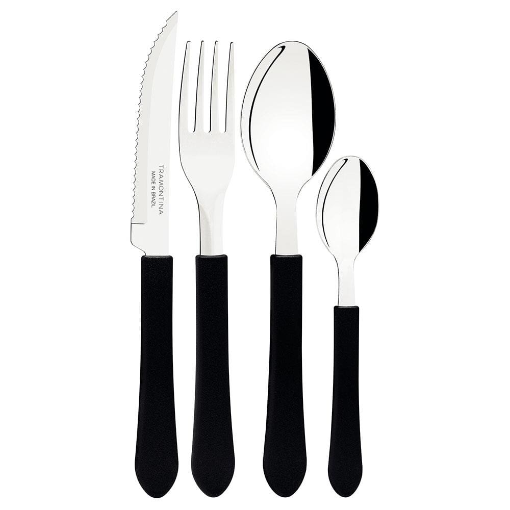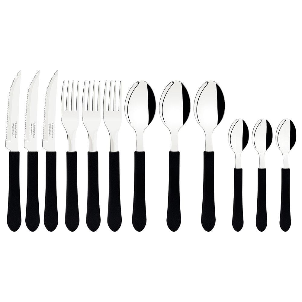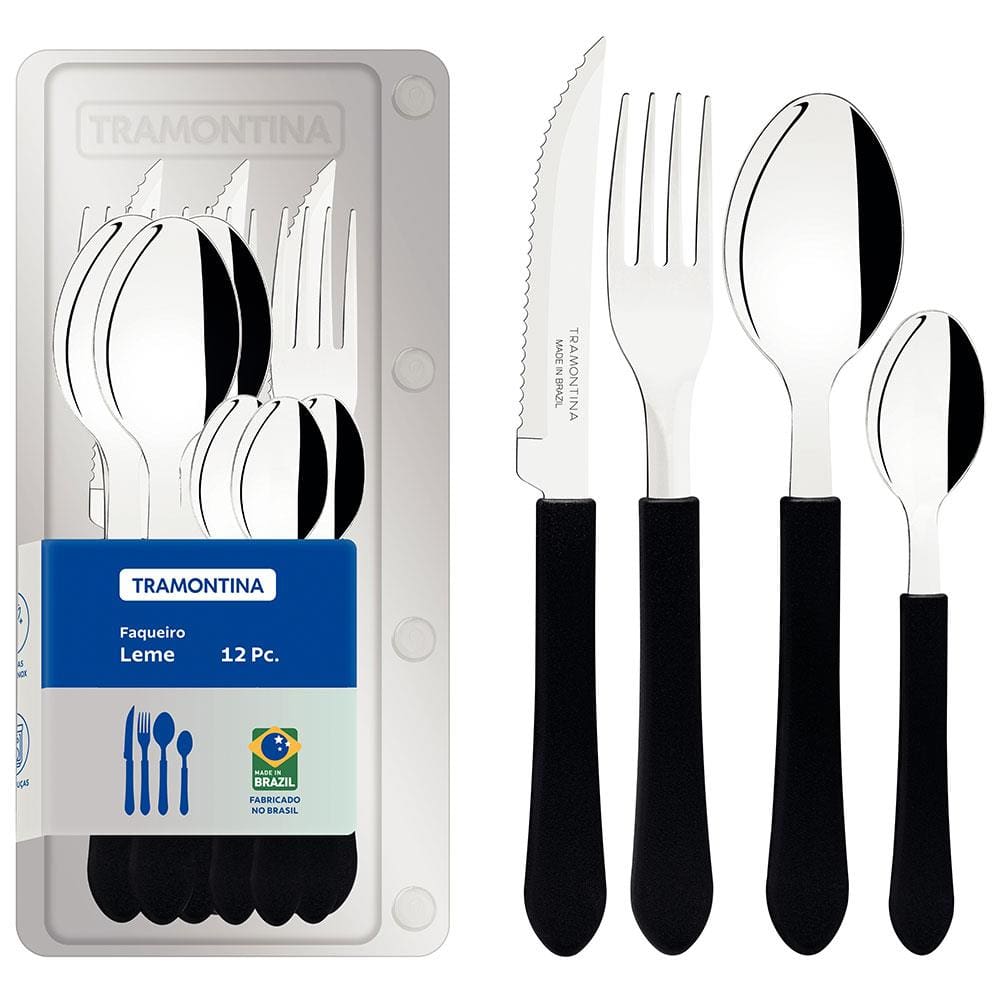 Faqueiro 12 Peças Tramontina Leme com Lâminas em Aço Inox e Cabos de Polipropileno - Preto