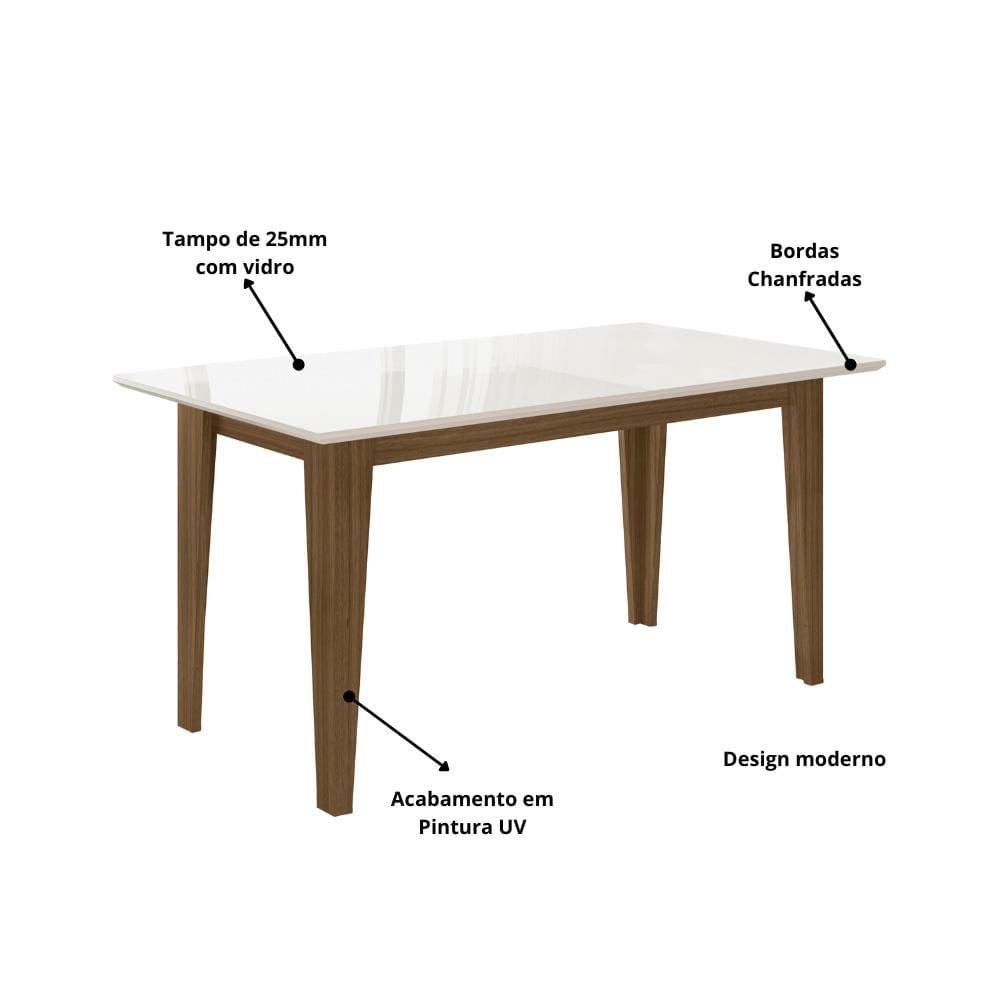 Mesa de Jantar Goya com Vidro e 06 Cadeiras
