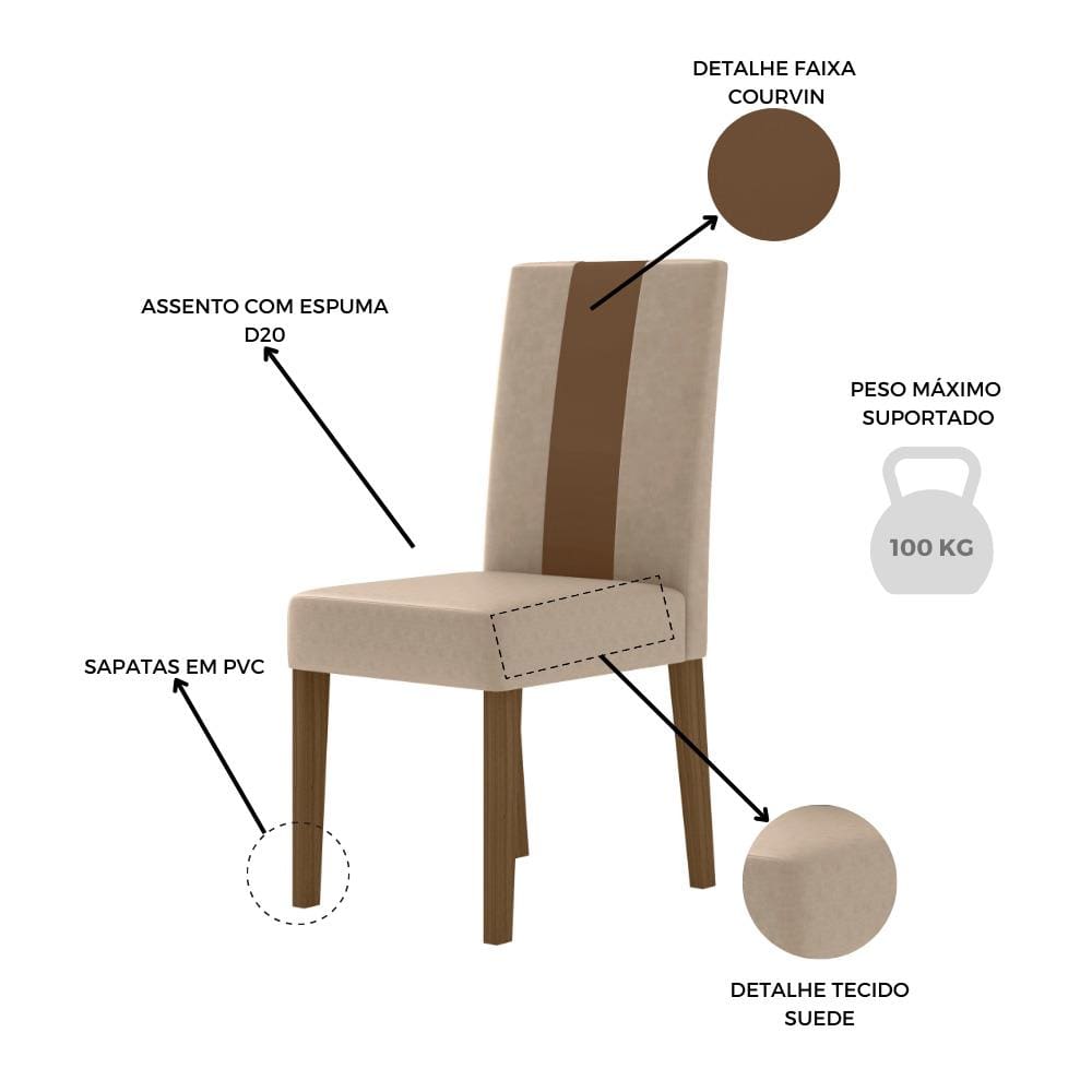 Com um Design contemporâneo que combina com diversas decorações, tampo retangular em MDP 25mm com aplicação de vidro 3mm para durabilidade e fácil limpeza, essa mesa é ideal para todo tipo de ambiente. Acompanha 06 cadeiras ergonomicamente projetadas, revestidas em tecido suede aveludado para conforto extra.