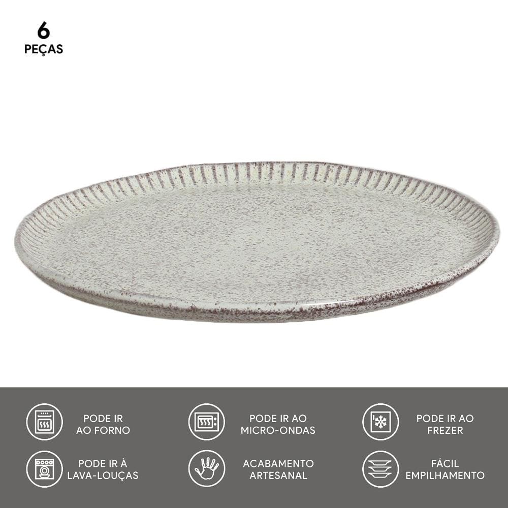 O Conjunto de Pratos Rasos Linhas Pistache insere charme e sofisticação as refeições diárias. Composto por 6 peças de 27,5cm de diâmetro e detalhes de linhas nos contornos de cada peça, os pratos são a escolha perfeita para servir saladas, carnes e até mesmo massas.