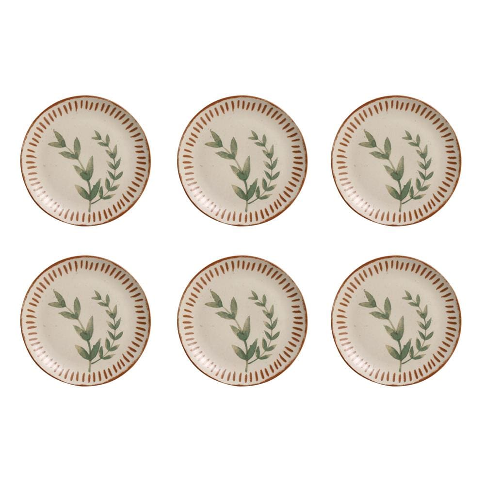 O Conjunto de Pratos Para Sobremesa Porto Brasil da linha Magari traz design delicado, com estampa inspirada em folhagens e traços na borda. Composto por 6 peças redondas, proporcionam uma linda mesa posta para cada ocasião.