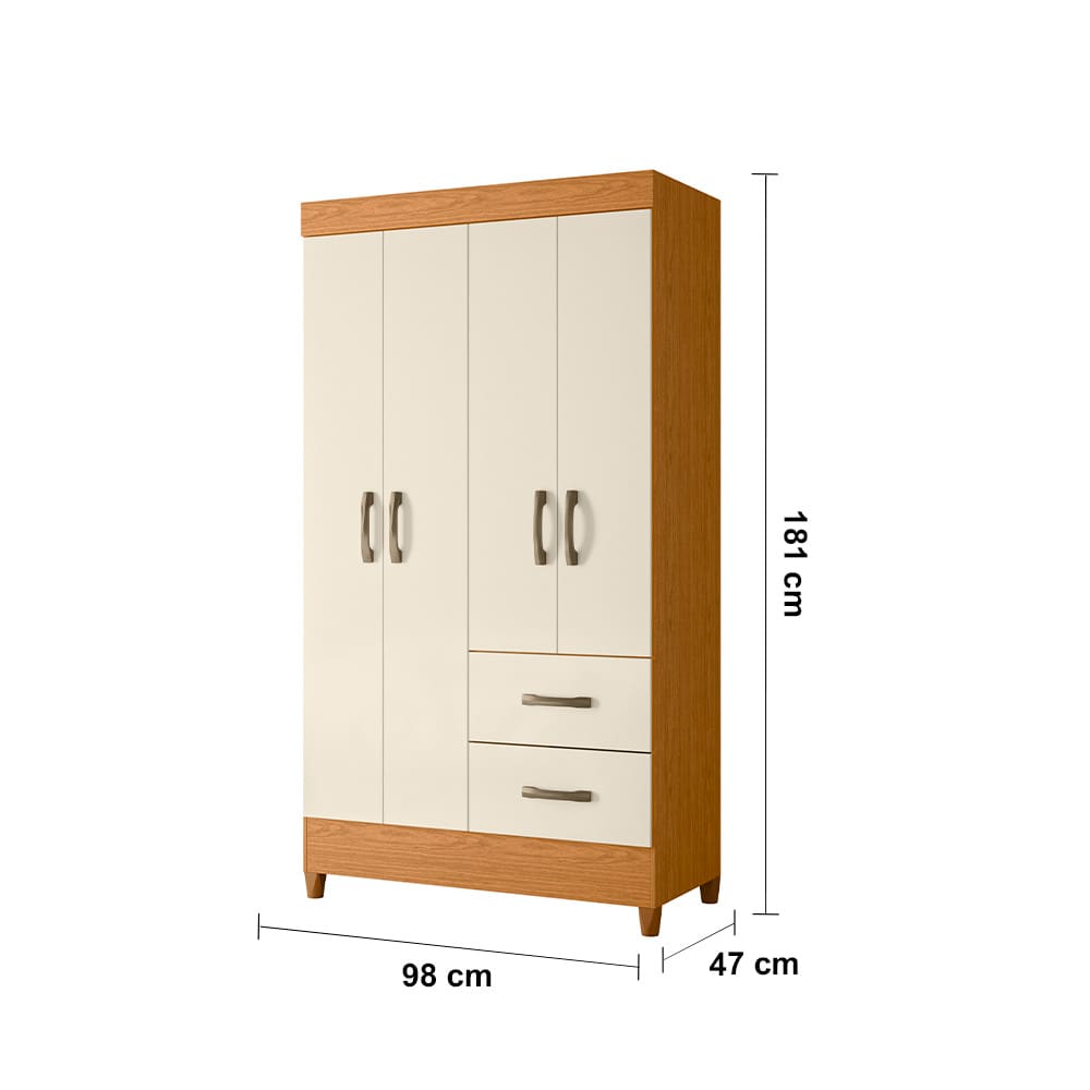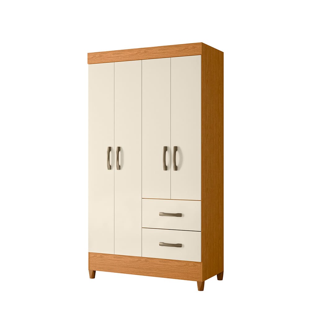 Guarda-Roupa Solteiro Palumóveis Mobi com Cabideiro, 4 Portas de Bater e 2 Gavetas, Cinamomo e Off White - 98cm de Largura