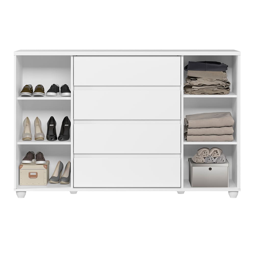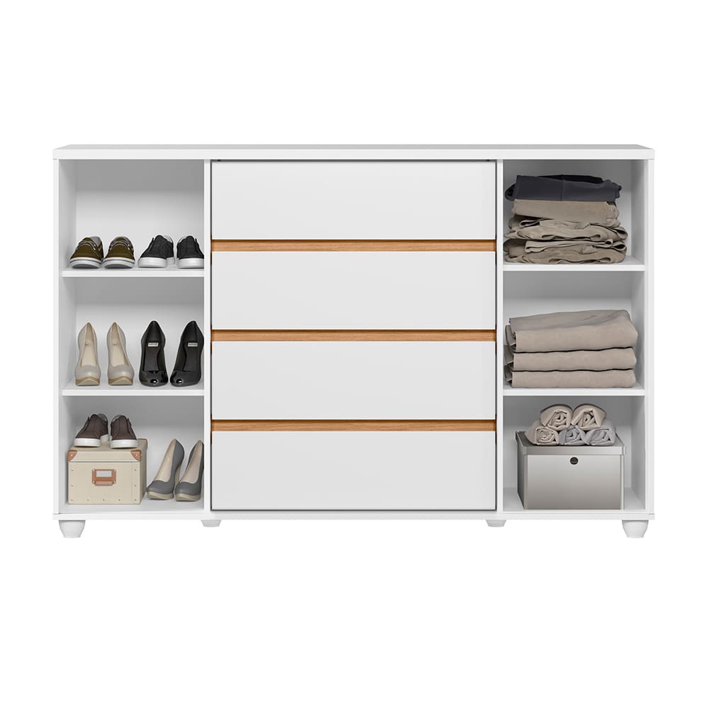 Conteúdo da Embalagem: -1 Cômoda Palumoveis Evidenza com 4 Gavetas e 2 Portas – 150cm de Largura