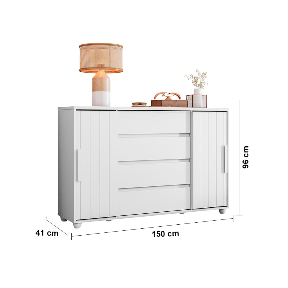 Cômoda Palumoveis Evidenza com 4 Gavetas e 2 Portas – 150cm de Largura
