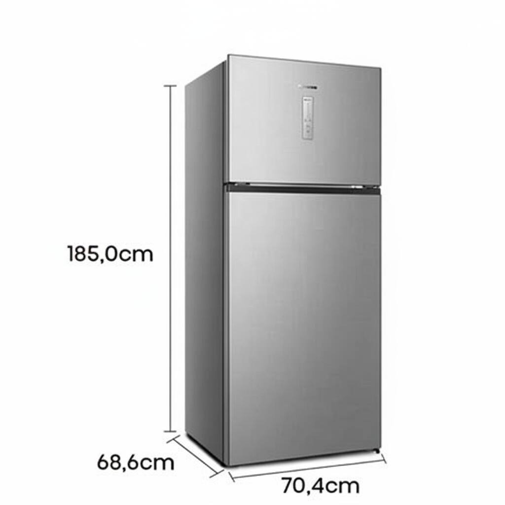 Geladeira Hisense Frost Free Duplex Inverter RT3N461, um refrigerador moderno que une design sofisticado, alta performance e economia. Com 466 litros de capacidade total, pensado para famílias de 6 a 8 pessoas que desejam praticidade no dia a dia sem abrir mão da elegância na cozinha.