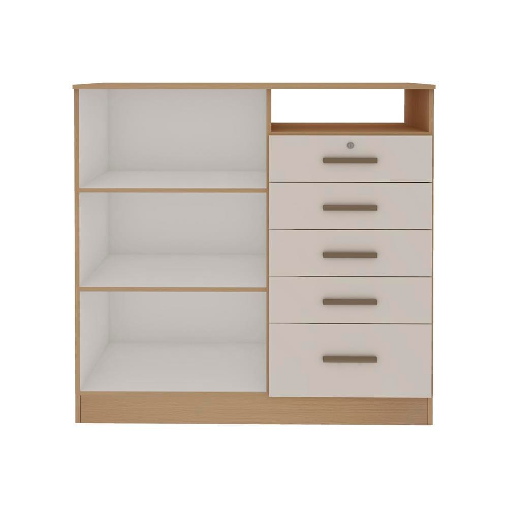 Cômoda Genialflex Guatemala com 2 Portas, 5 Gavetas, 2 Prateleiras, 1 Nicho e 112cm de largura - Freijó/White Laca