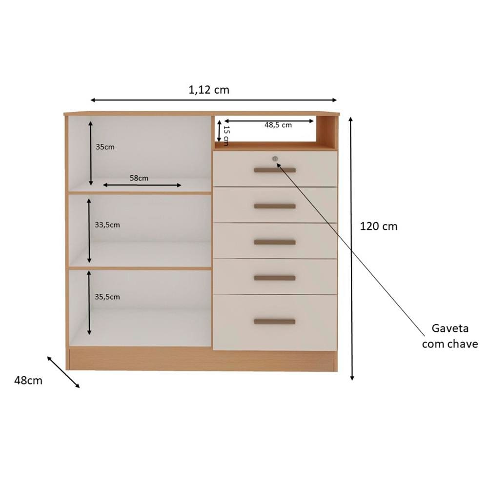 Conteúdo da Embalagem: -1 Cômoda Genialflex Guatemala com 2 Portas, 5 Gavetas, 2 Prateleiras, 1 Nicho e 112cm de largura - Freijó/White Laca;