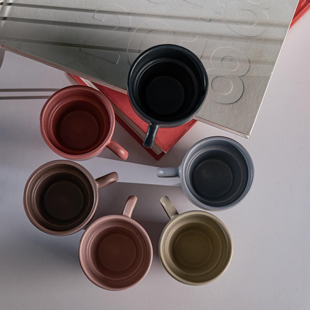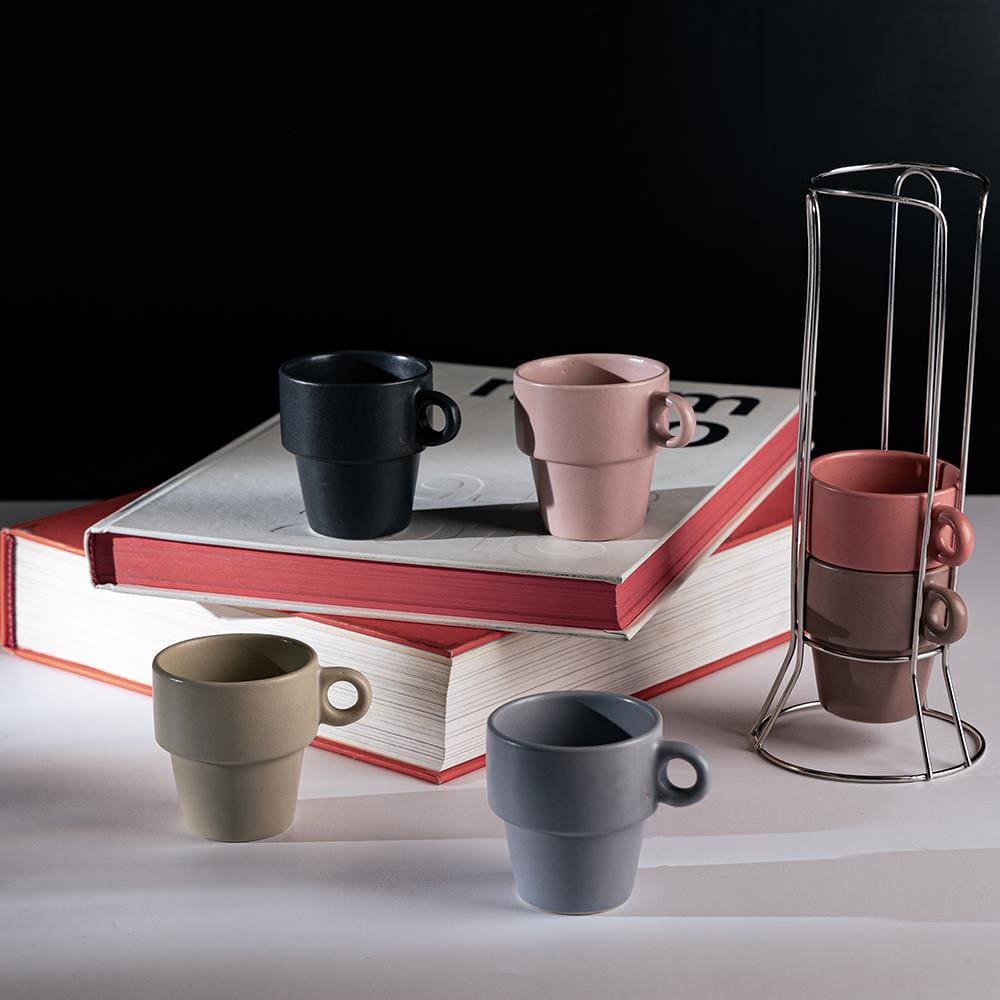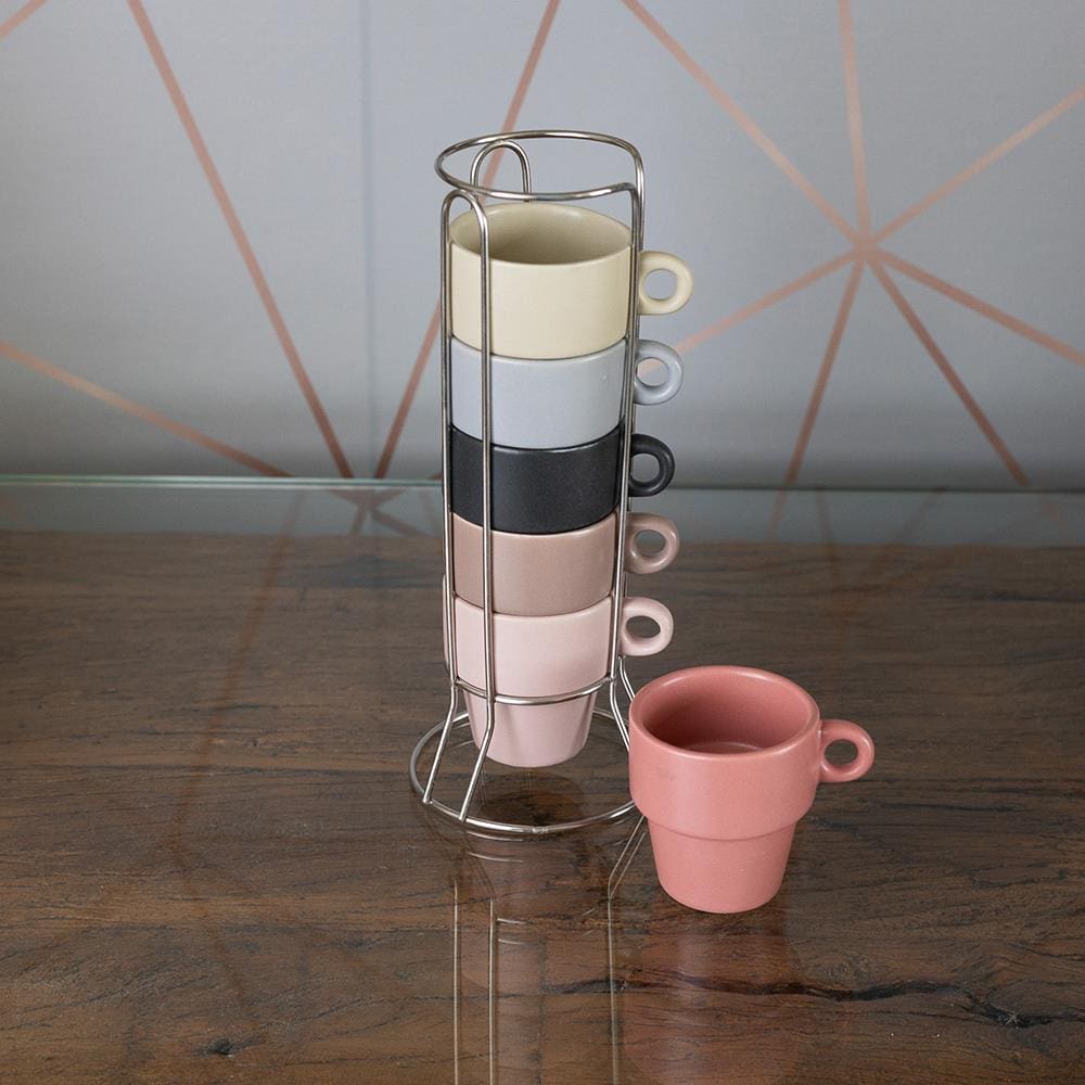 Conjunto 6 Xícaras Cerâmica Café Wolff 90ml Coloridas Empilháveis com Suporte