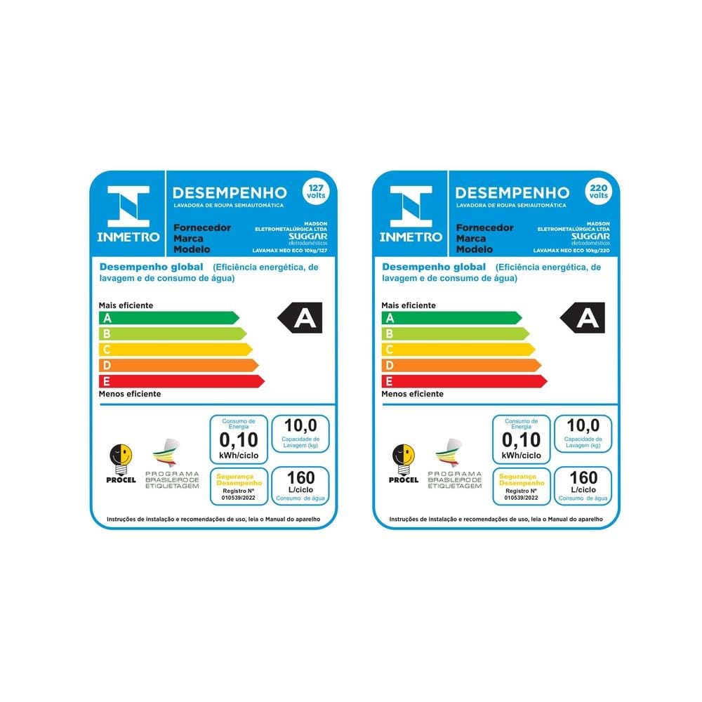 Classificação energética A e baixo consumo de energia (apenas 0,10kWh por ciclo) completam seu excelente desempenho.