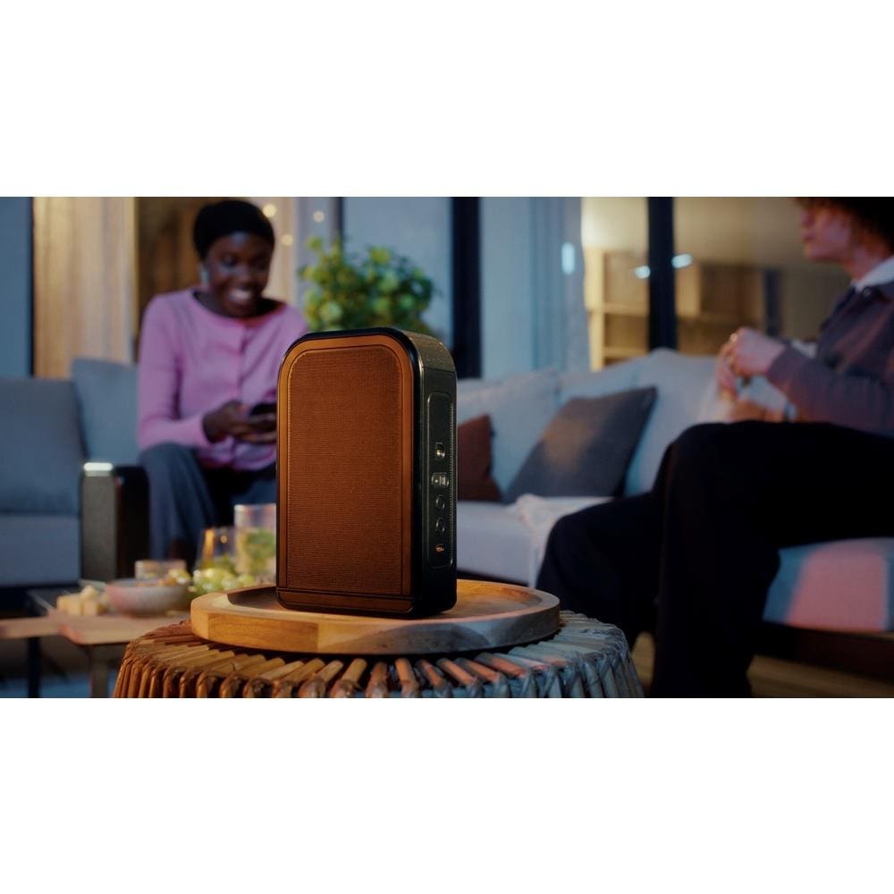 Seu subwoofer sem fio de 12” garante graves potentes e profundos, enquanto as colunas traseiras removíveis permitem criar um verdadeiro som surround sem cabos extras. Basta destacá-las e posicioná-las atrás do ambiente para mergulhar em uma atmosfera cinematográfica.