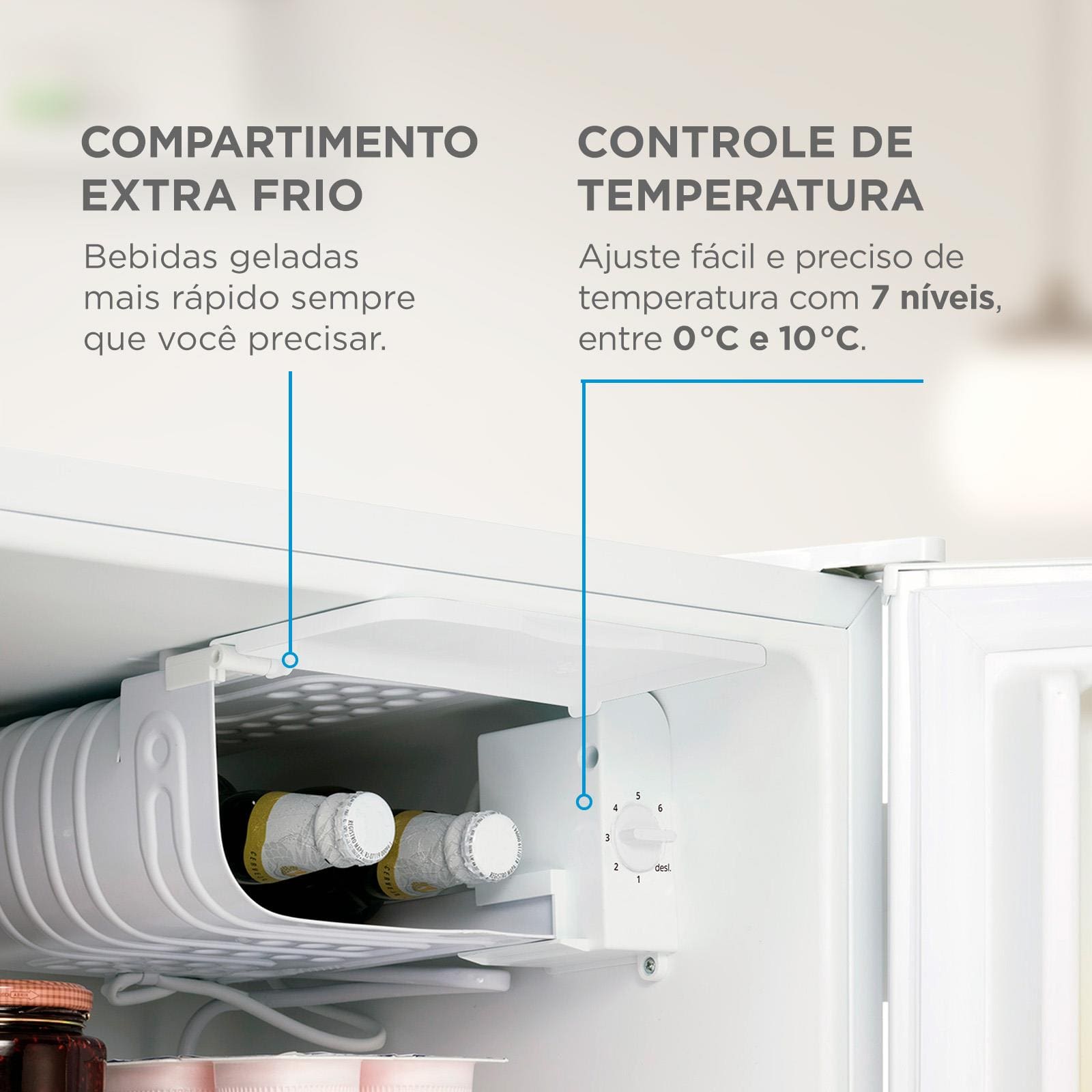 • Organização Premium: Prateleira de vidro temperado, porta-latas dedicado e espaço otimizado para garrafas PET.
