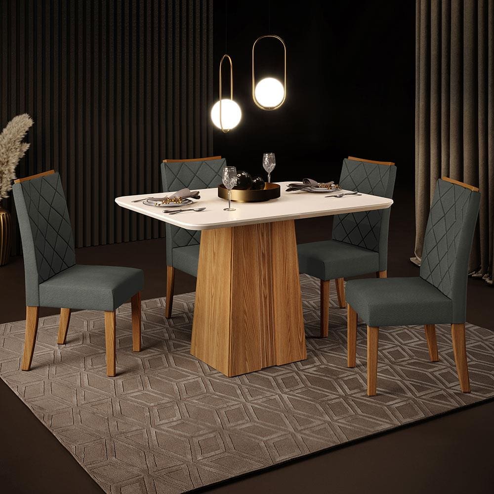 Mesa de Jantar Retangular DJ Móveis Raquel Plus com 4 Cadeiras Revestidas em Suede e Veludo