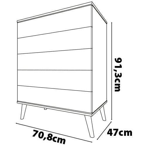 Os pés plásticos conferem estabilidade e segurança ao móvel, enquanto os puxadores plásticos, além de funcionais, adicionam um toque moderno ao design da cômoda.