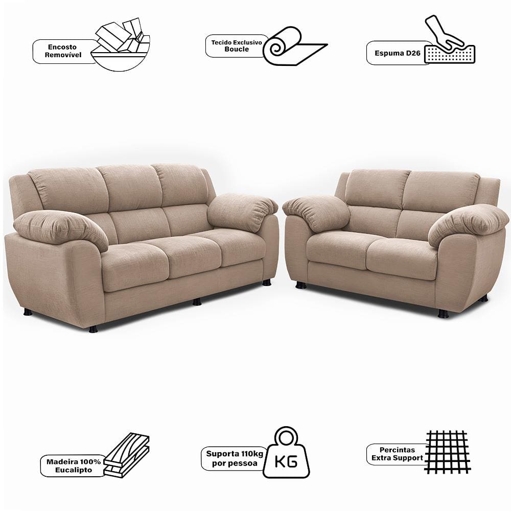 Sofá de 3 e 2 Lugares Cama inBox Paris com 202cm e 152cm de Larguras e Revestidos em Bouclé
