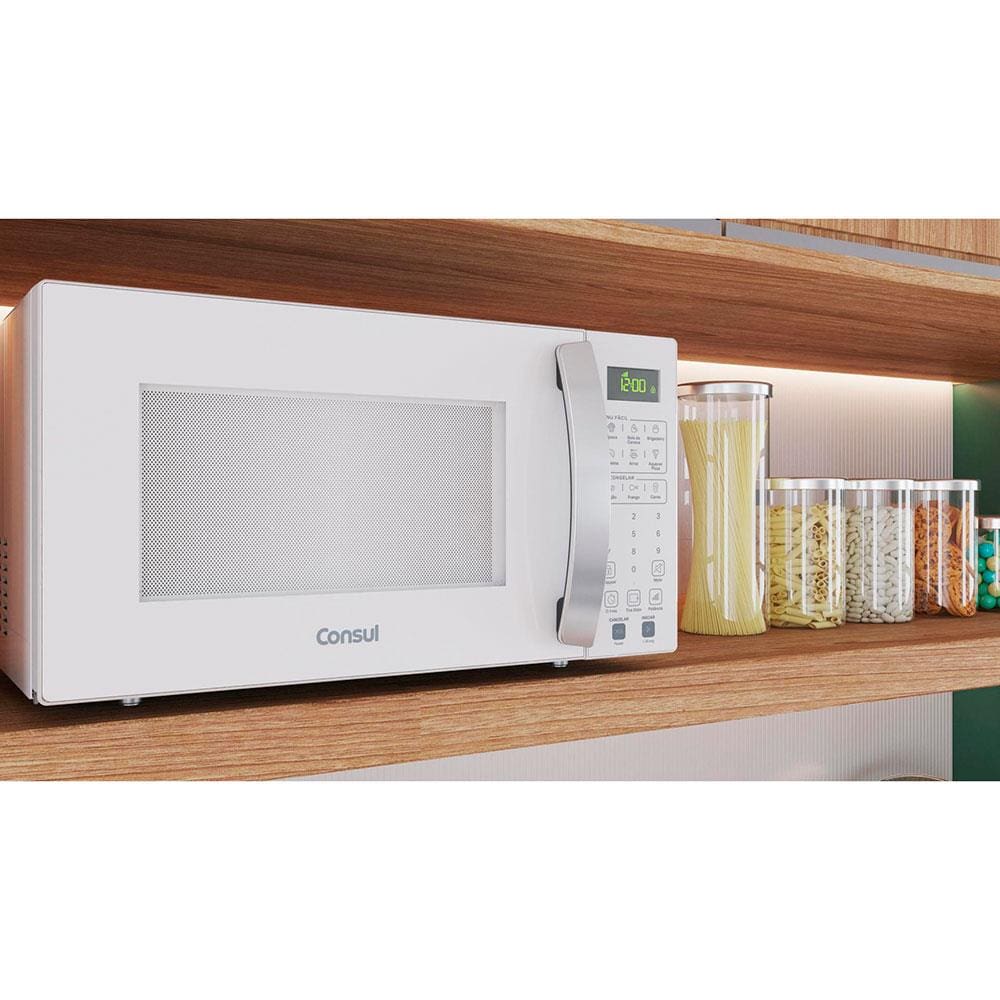 Conheça o forno micro-ondas Consul CMS46AB, um aparelho moderno, na cor Branca e com design elegante que combina com qualquer estilo de cozinha. Ele facilita a tarefa de cozinhar e auxilia no preparo até dos pratos mais delicados, basta utilizar as diferentes funções e níveis de potência. O micro-ondas Consul 32L salva sua rotina. O Menu fácil agiliza o preparo das receitas mais usadas no dia-a-dia, e a função Tira Odor reduz o cheiro de comida após o uso com apenas um botão. Sem falar no design, que dá um toque de modernidade. Bem pensado né?
