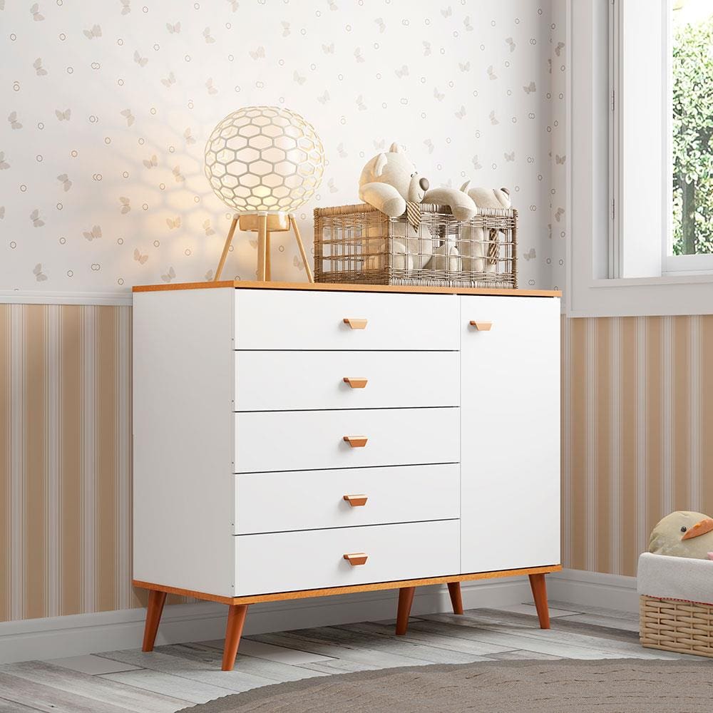 Cômoda Infantil Bartira Ternura com 5 Gavetas e 1 Porta - 106,8cm de largura