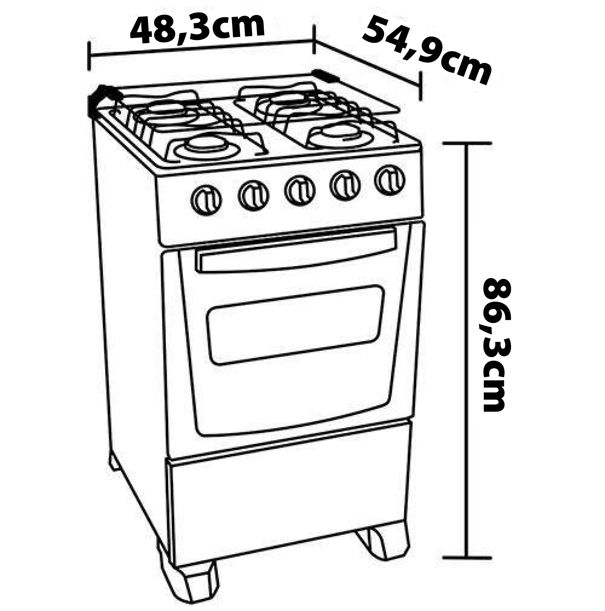 O fogão conta ainda com queimadores potentes, que garantem um cozimento uniforme dos alimentos. O forno tem capacidade de 48 litros, o que permite preparar receitas para toda a família.