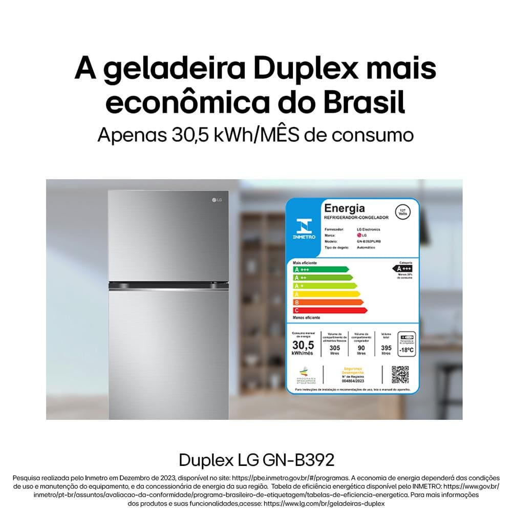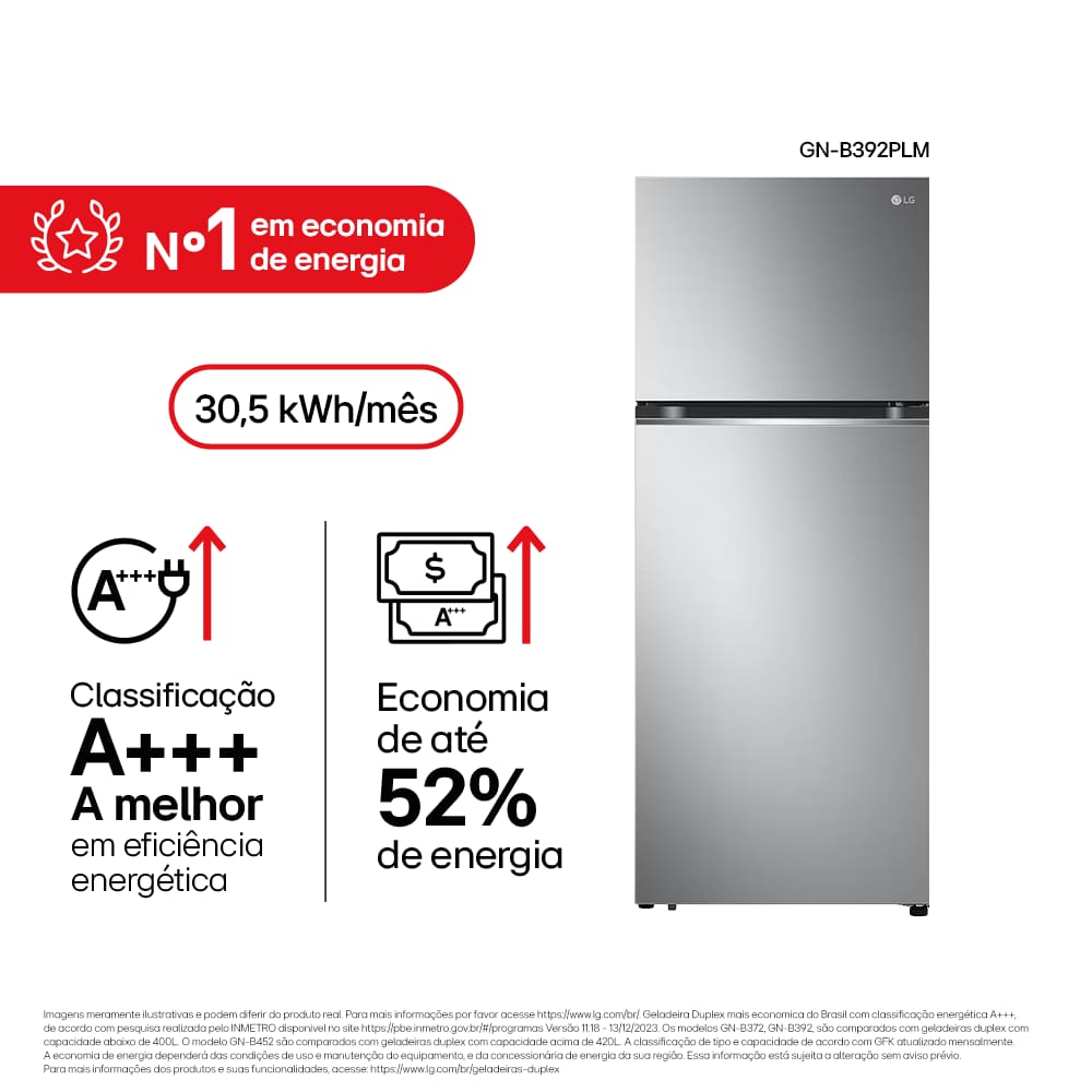 Conteúdo da embalagem: -1 Geladeira LG Frost Free Duplex Gaveta Fresh Zone Multi Air Flow Inox Look - 395L;