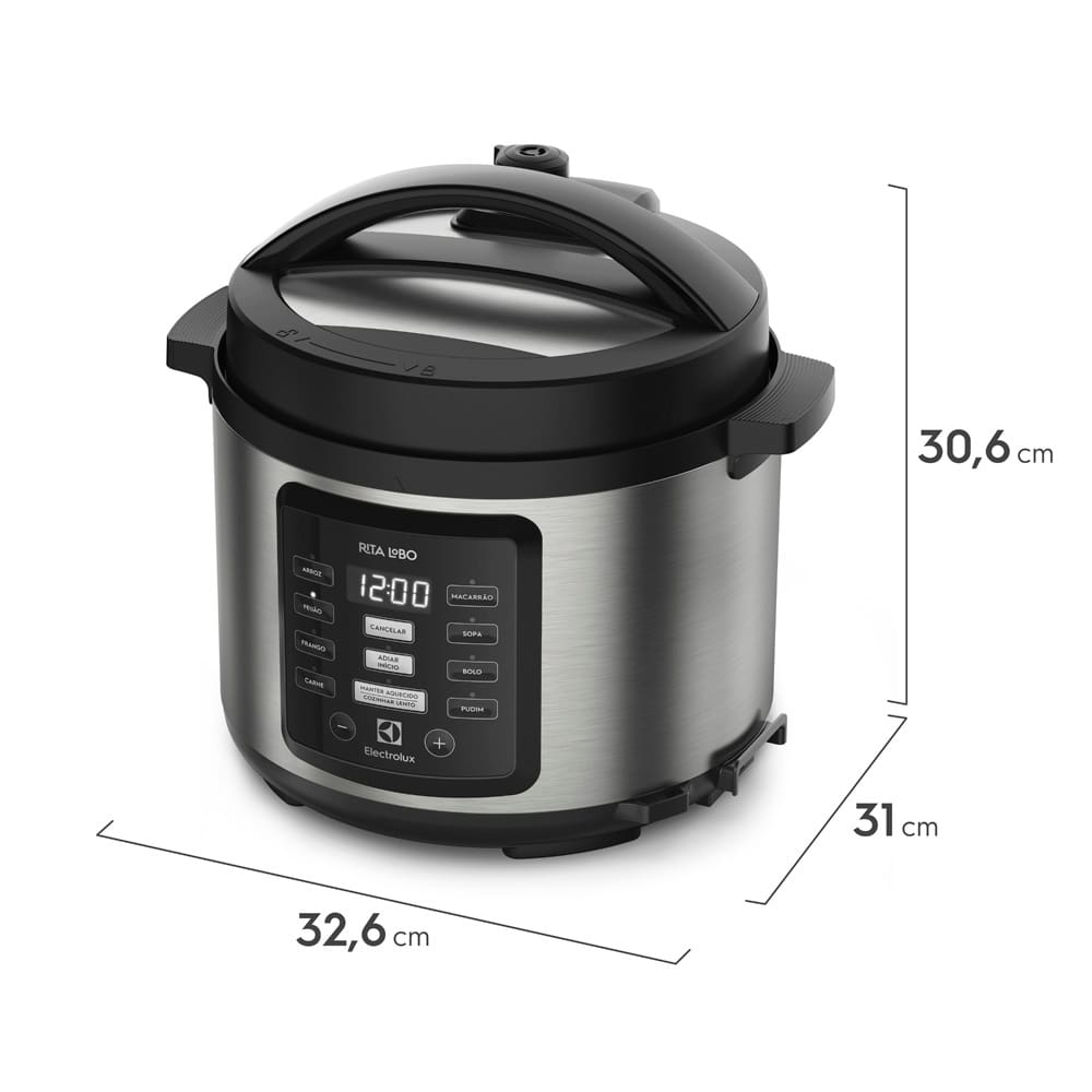 Conteúdo da Embalagem: -1 Panela Elétrica de Pressão Electrolux EX PCC15 por Rita Lobo com Display Digital 5L – Inox e Preta;