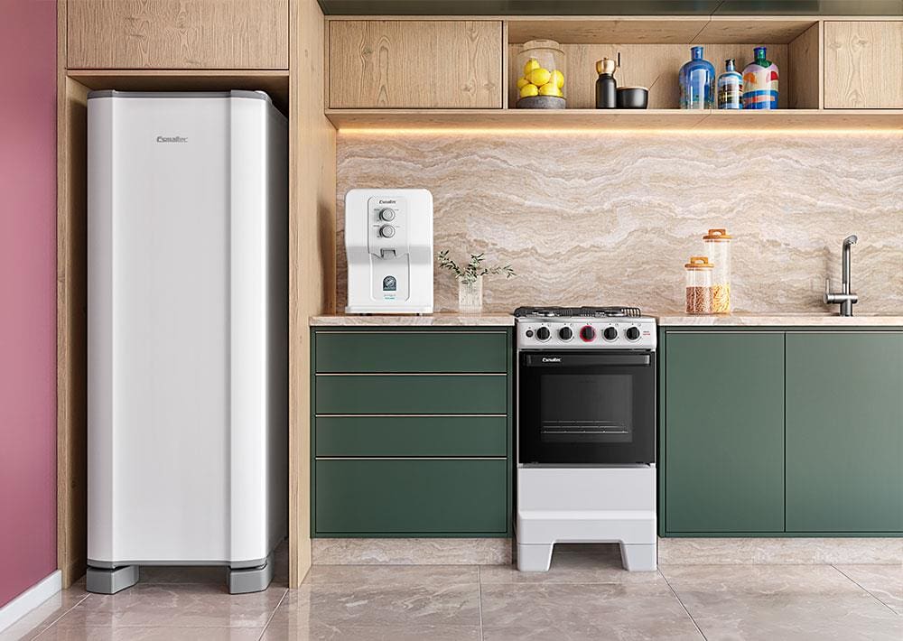 Com puxador robusto e ergonômico, botões removíveis e pés altos e retos com encaixe fácil, o Esmaltec Ideal Super alia conforto, segurança e facilidade na organização da cozinha.