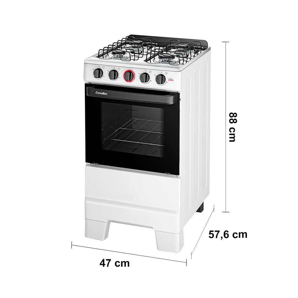 Fogão de Piso a Gás Esmaltec 4 Bocas Ideal Super Mesa Inox e Forno Limpa Fácil 50L - Branco