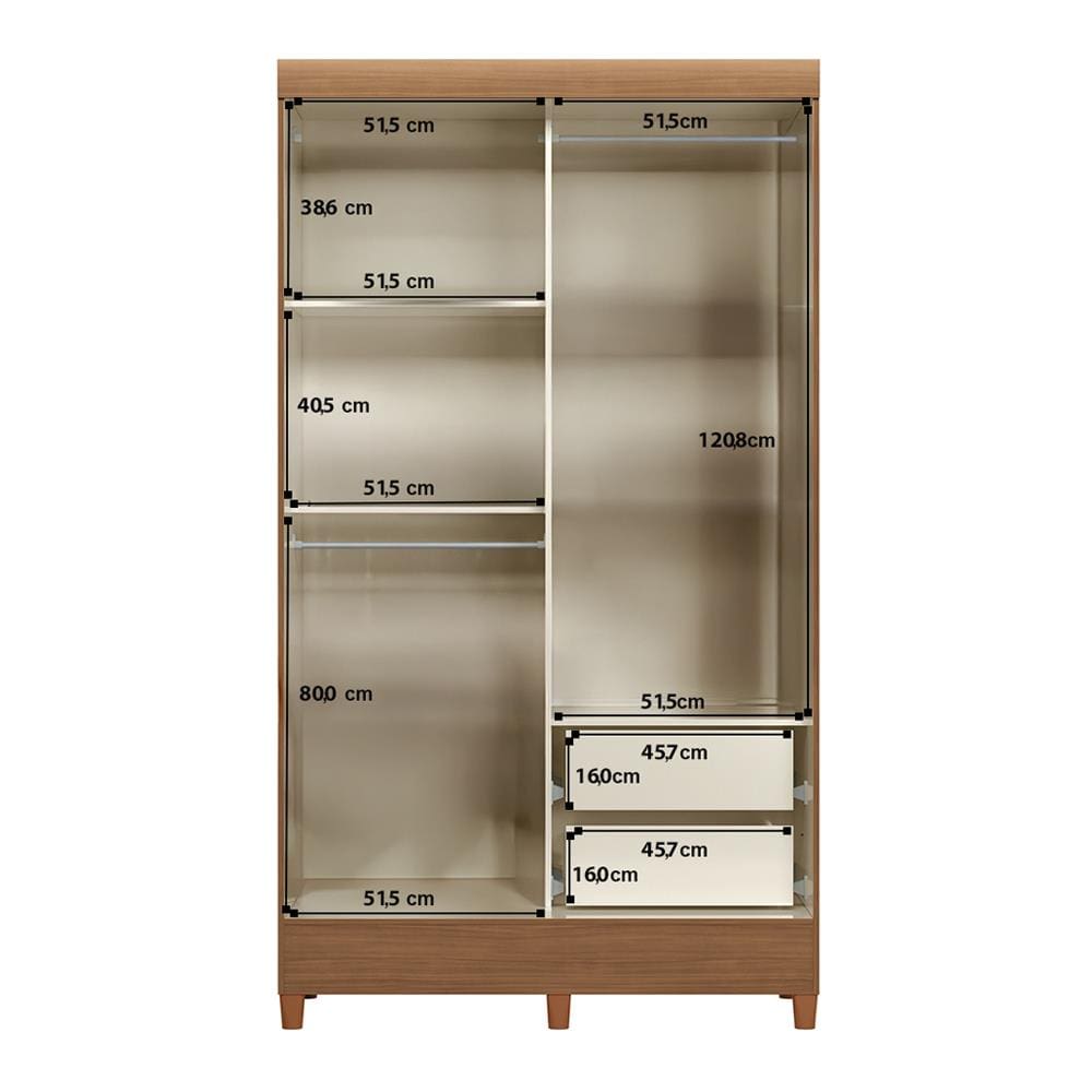 Guarda-roupa Santos Andirá Fit 2 Portas, 2 Gavetas com Cabideiro e Maleiro Solteiro – 106,6 cm de largura