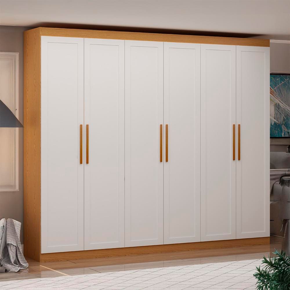Guarda-Roupa Casal Genialflex Provençal Madri, 6 Portas, 3 Gavetas e 4 Prateleiras 255cm de largura – Cinamomo/Branco