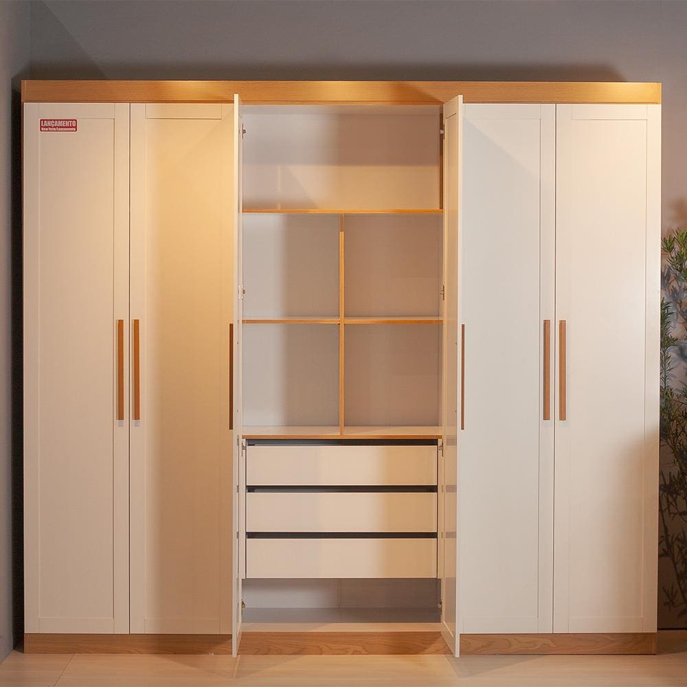 Observações: -ATENÇÃO: O item é composto APENAS pelo Guarda-Roupa Casal Genialflex Provençal Madri, 6 Portas, 3 Gavetas e 4 Prateleiras 255cm de largura – Cinamomo/Branco. Os demais componentes nas imagens são apenas ilustrativos.