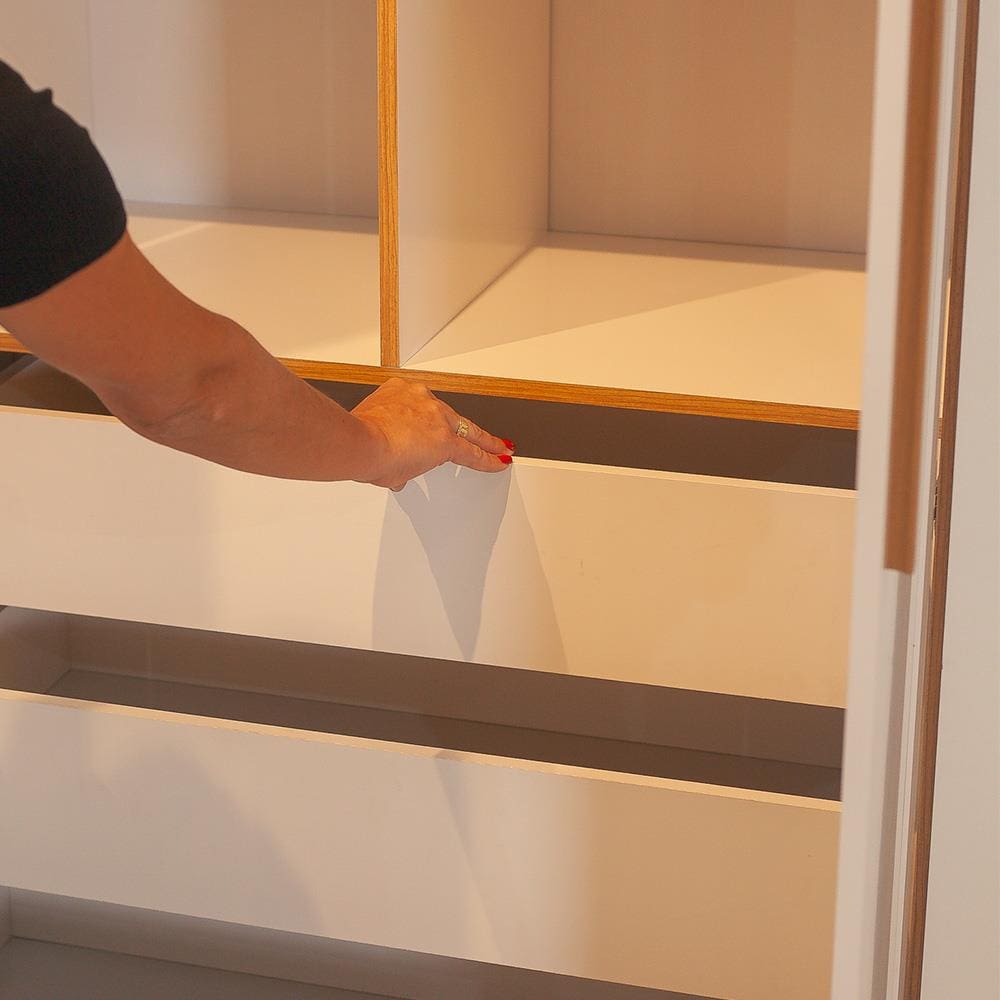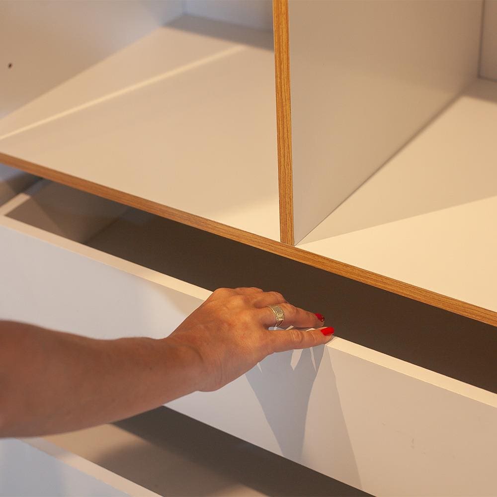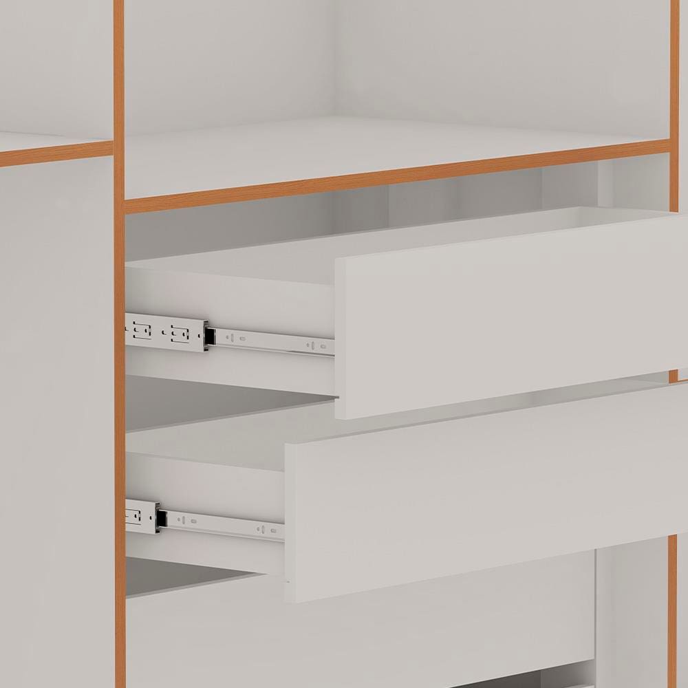 Pensado para oferecer o máximo de praticidade, este roupeiro possui maleiro espaçoso e cabideiro, proporcionando excelente organização para suas roupas e acessórios. As três gavetas são equipadas com corrediças telescópicas, que permitem um deslizamento suave e seguro. Além disso, suas dobradiças metálicas com amortecimento garantem um fechamento silencioso e sem impacto, preservando a estrutura do móvel por mais tempo.