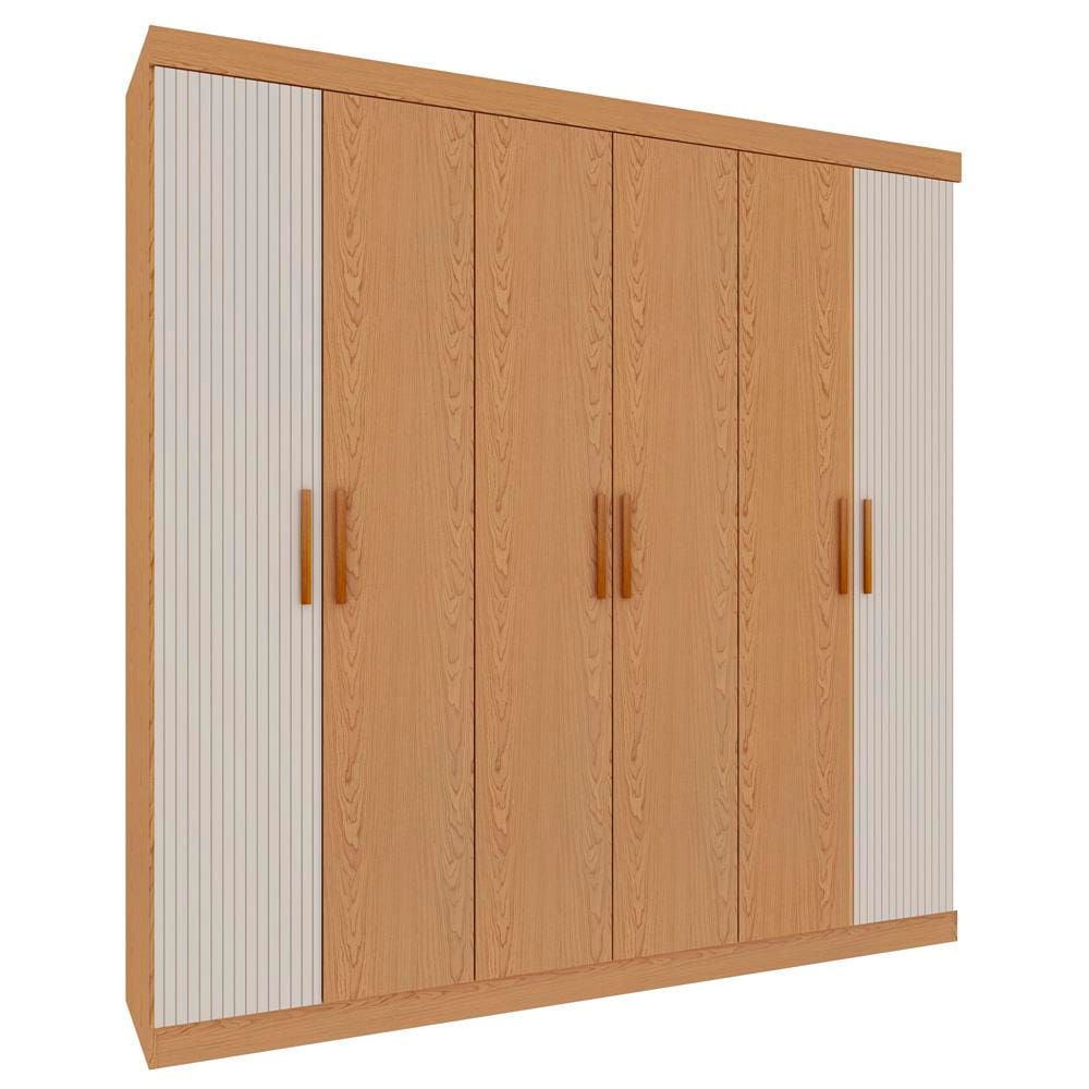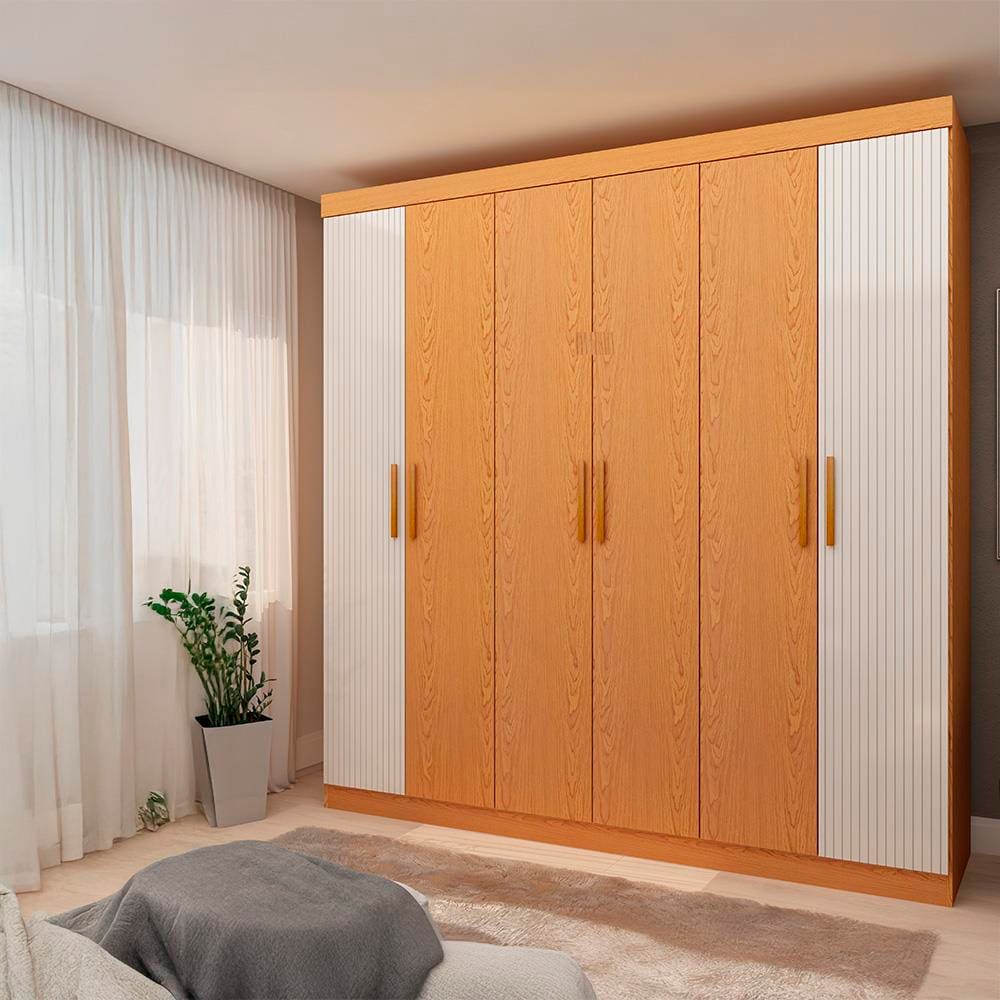 Guarda-Roupa Casal Genialflex Palermo, 6 Portas, 2 Gavetas e 4 Prateleiras 205cm de largura – Cinamomo/White Laca Detalhe Frisado
