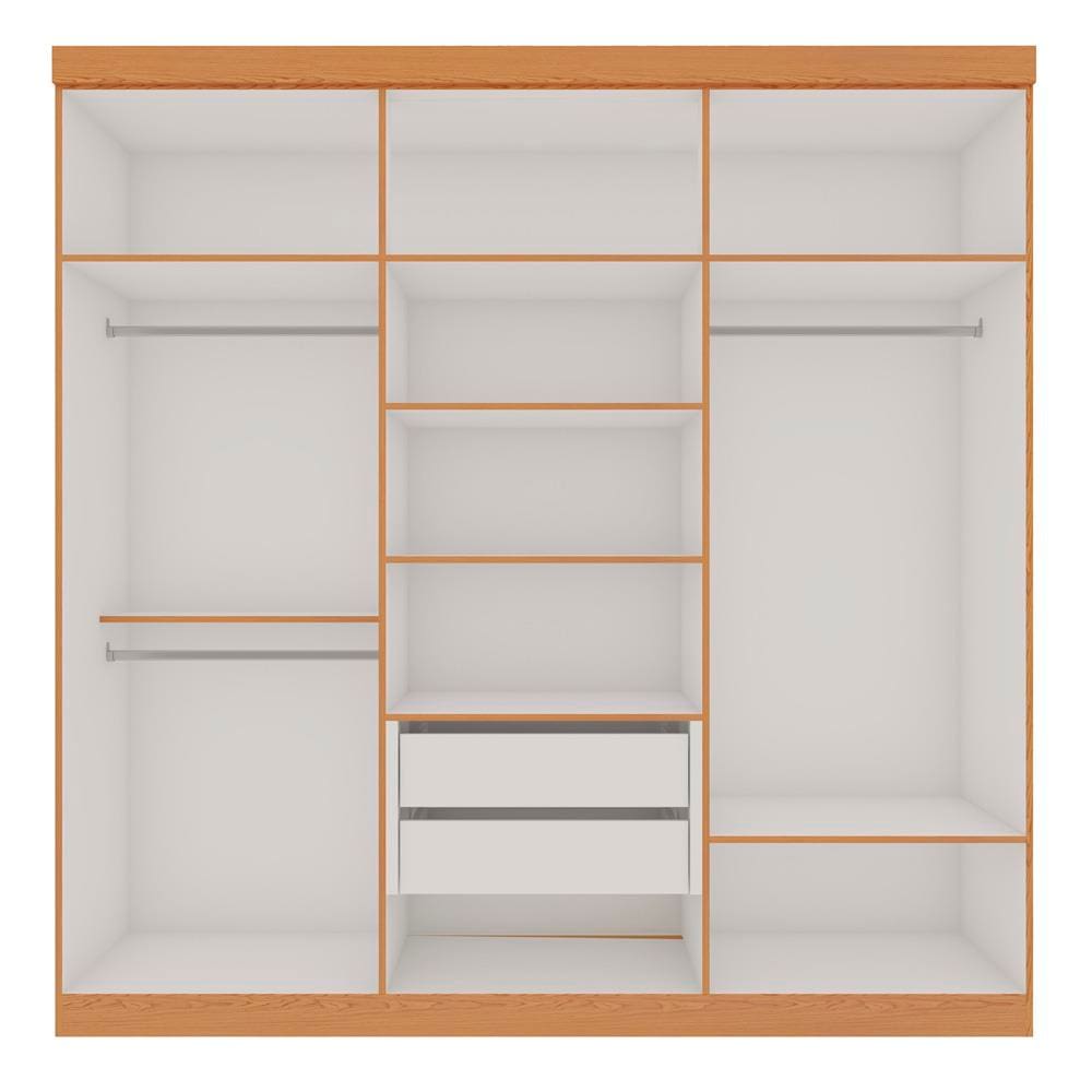Observações: -ATENÇÃO: O item é composto APENAS pelo Guarda-Roupa Casal Genialflex Palermo, 6 Portas, 2 Gavetas e 4 Prateleiras 205cm de largura – Cinamomo/White Laca Detalhe Frisado. Os demais componentes nas imagens são apenas ilustrativos.